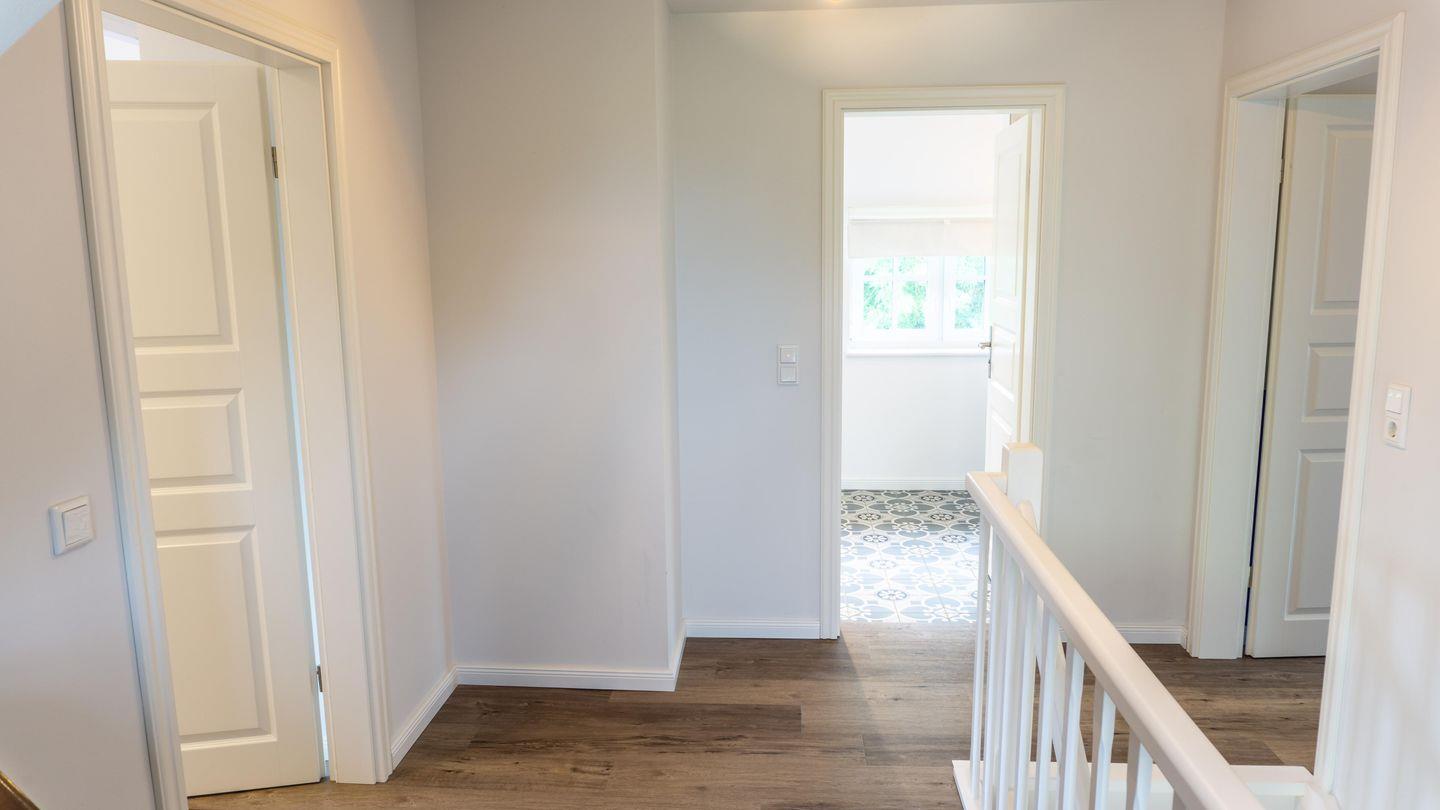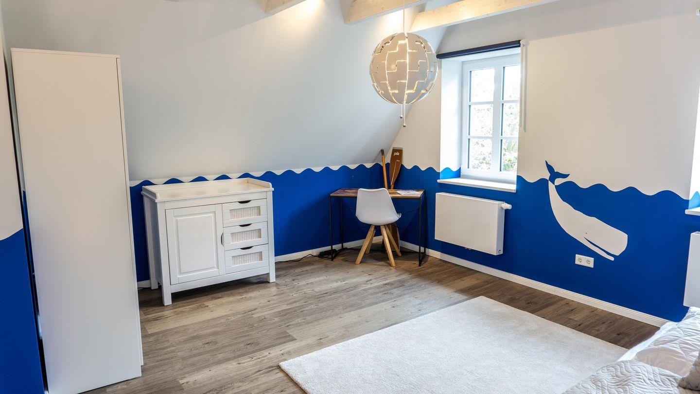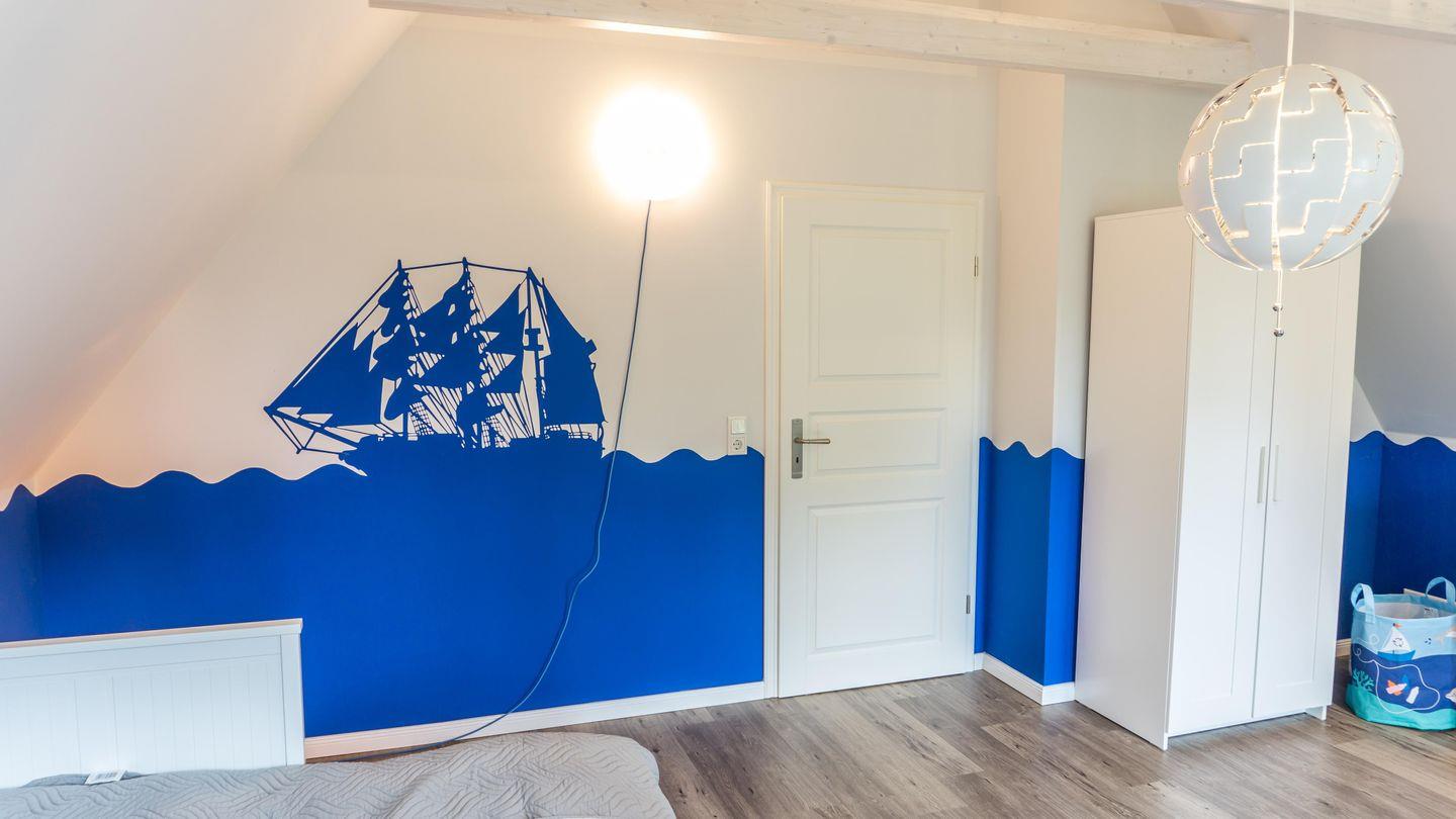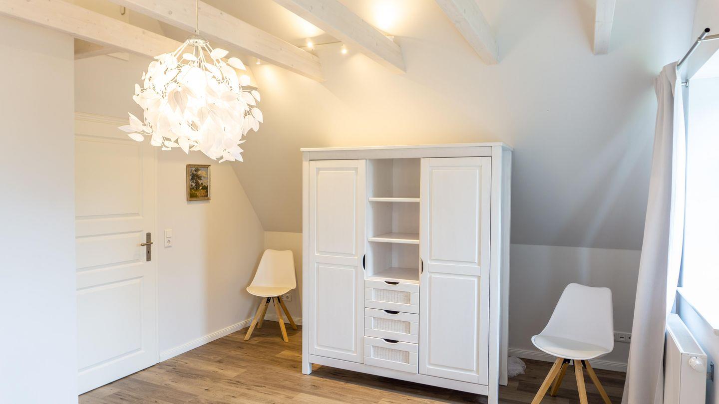 Zur Nachtruhe laden zwei behagliche Schlafzimmer (160 x 200 cm), mit ein Doppelbett und ein Hemnes-Bett (Kojenbett- ausziehbar zum Doppelbett auf gleicher Höhe 160 cm breit), ein.