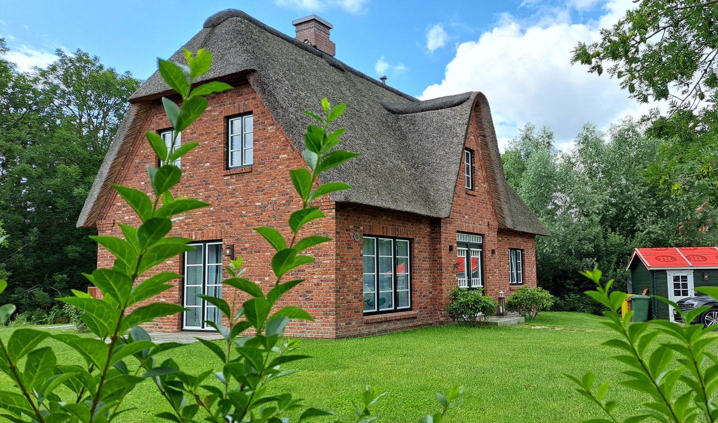 Modernes Reetdach-Ferienhaus in Tönning mit Garten, Kamin und kompletter Ausstattung für unvergessliche Urlaubstage an der Nordsee.