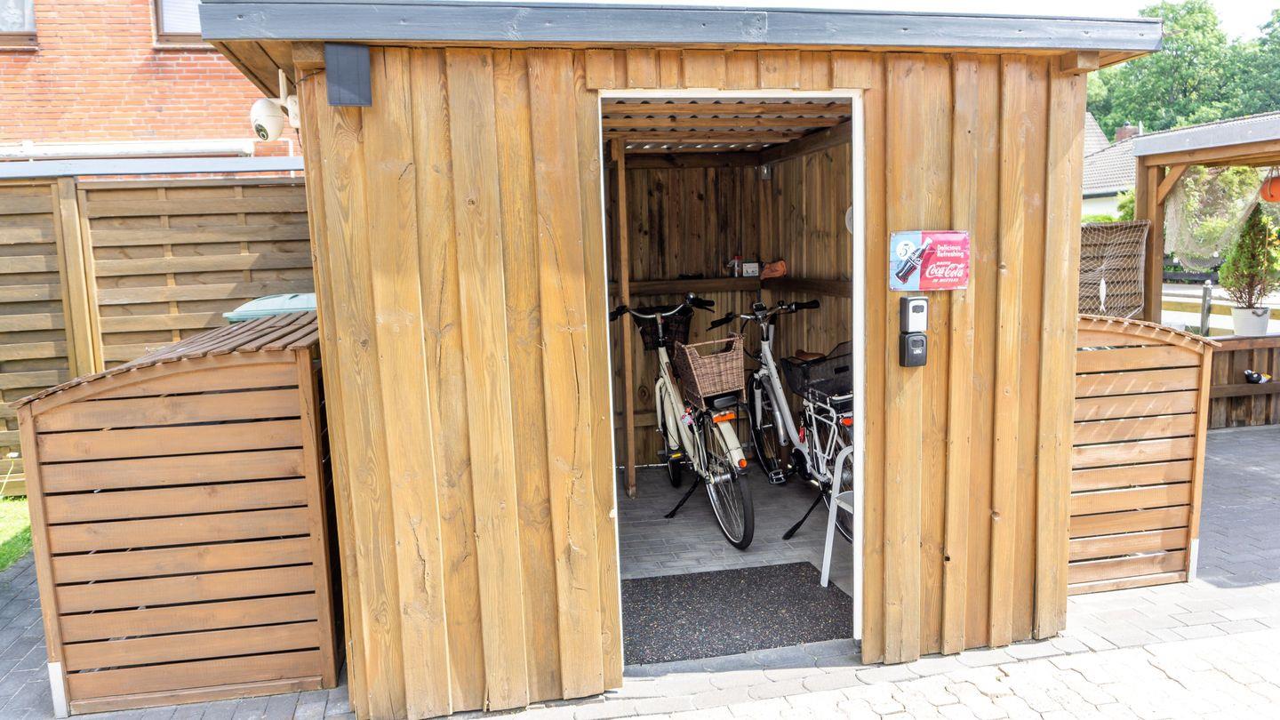 Genießen Sie entspannte Stunden auf der Terrasse, die mit Gartenmöbeln, Strandkorb, Sonnenliegen und Sonnenschutz ausgestattet ist. Ein Grill steht für gemütliche Abende zur Verfügung. Das Grundstück ist mit Sichtschutz an den Fenstern ausgestattet und bietet somit ausreichend Privatsphäre. Reisende mit Elektro-Fahrrädern profitieren von einer eBike-Ladestation mit Unterstellplatz.