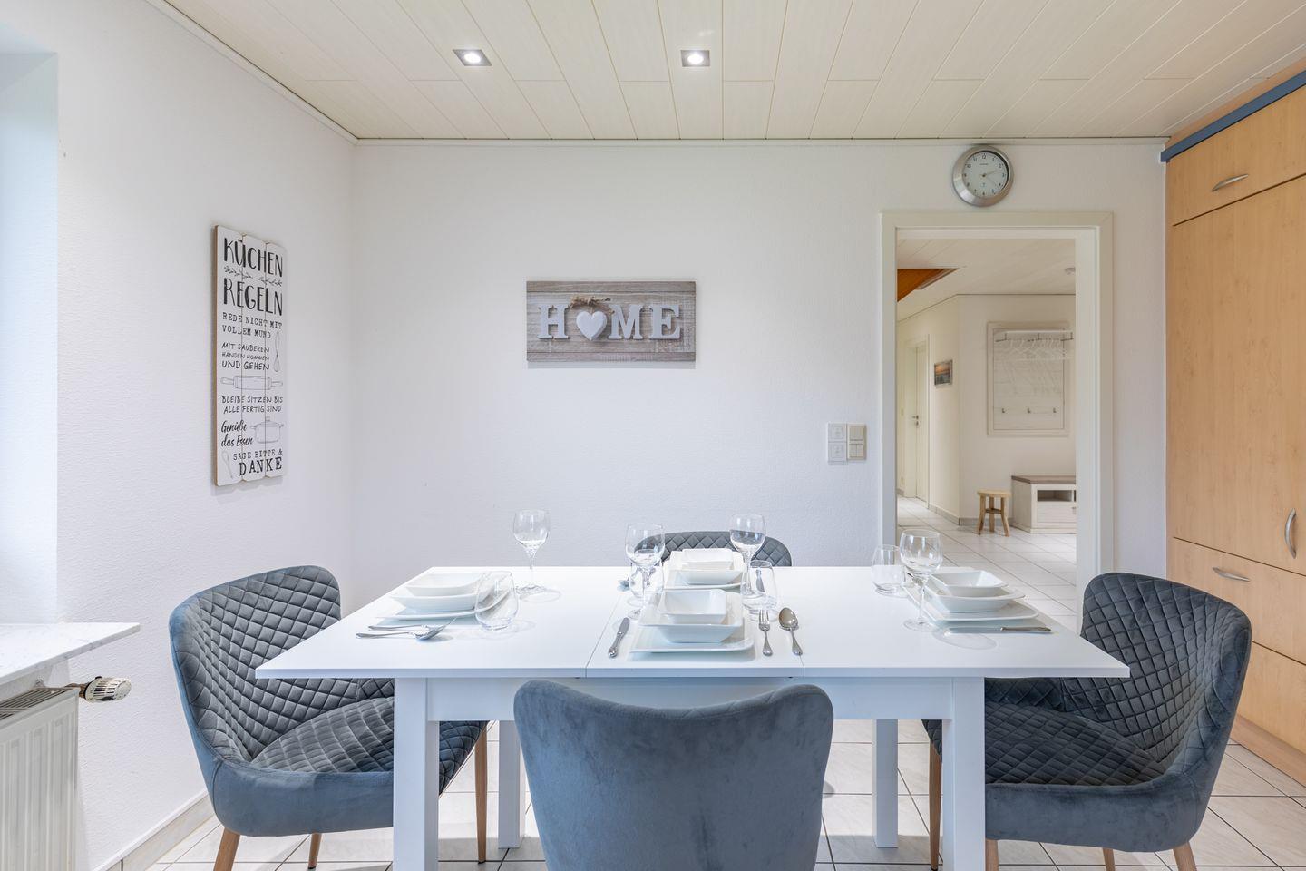 Die modern und gemütlich gestaltete Einrichtung sorgt für Wohlfühlatmosphäre. Der offene Wohnbereich lädt zum Entspannen ein und die gut ausgestattete Küche bietet alles, was Hobbyköche benötigen. Im großzügigen Essbereich finden gemeinsame Mahlzeiten Platz, während sich die gemütliche Sitzecke perfekt für entspannte Abende eignet.