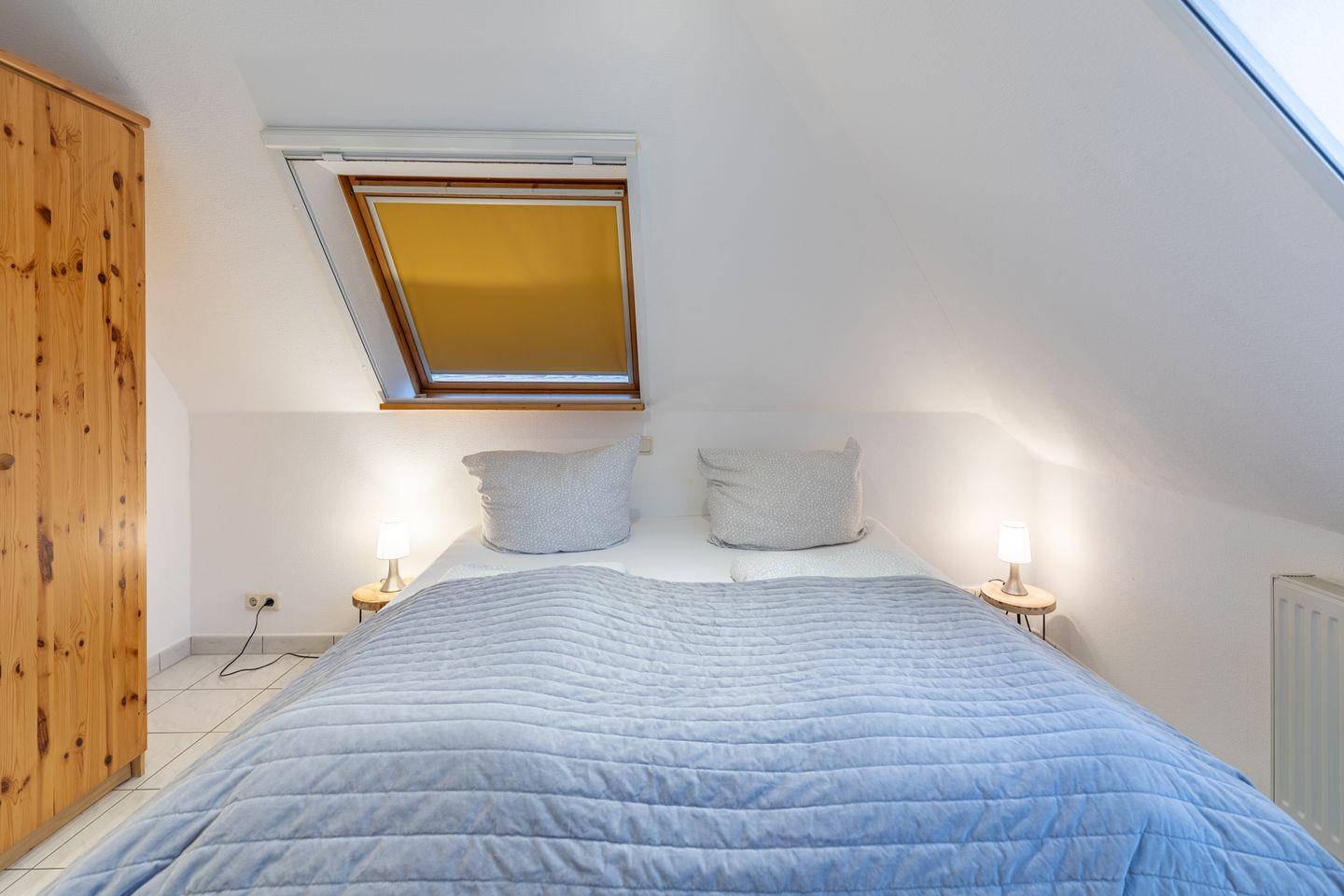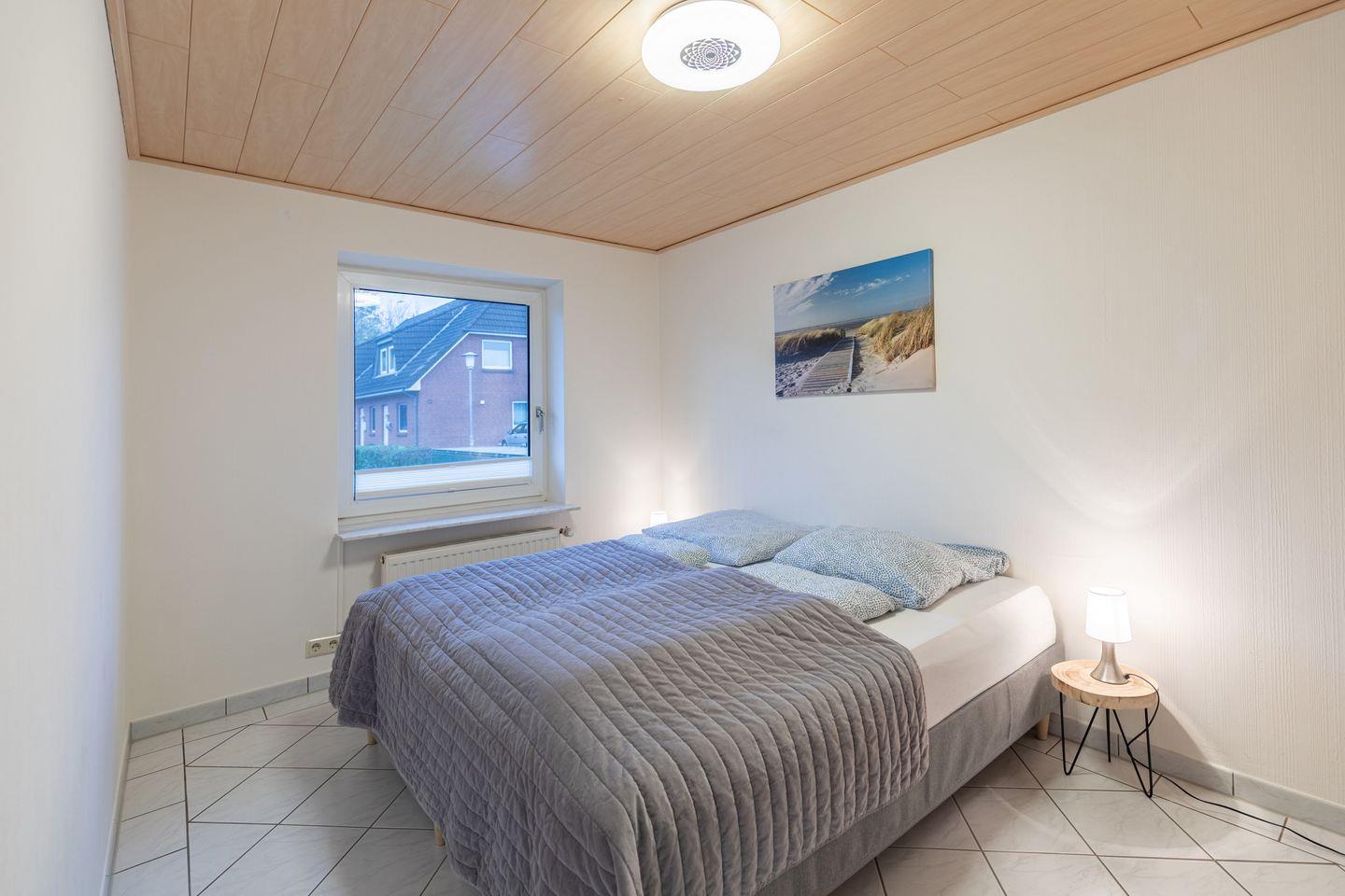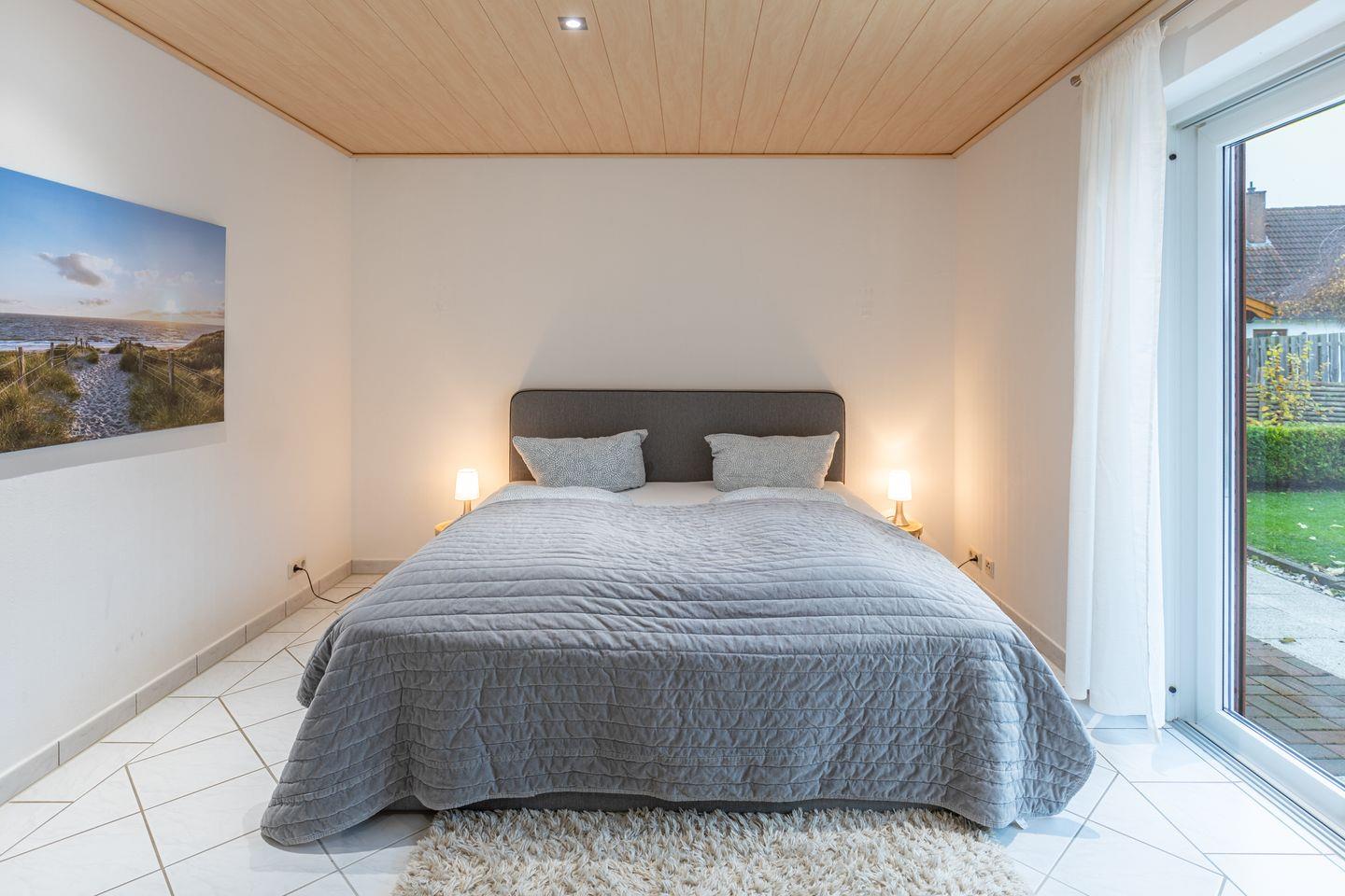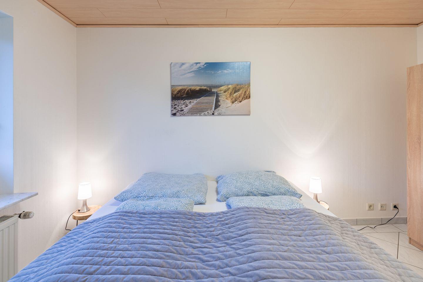 Zwei Schlafzimmer befinden sich im Erdgeschoss. Eines mit einem großem Boxspringbett 1,80 x 200cm und ein kleineres mit einem Bett mit der Größe 1,60 x 200cm.