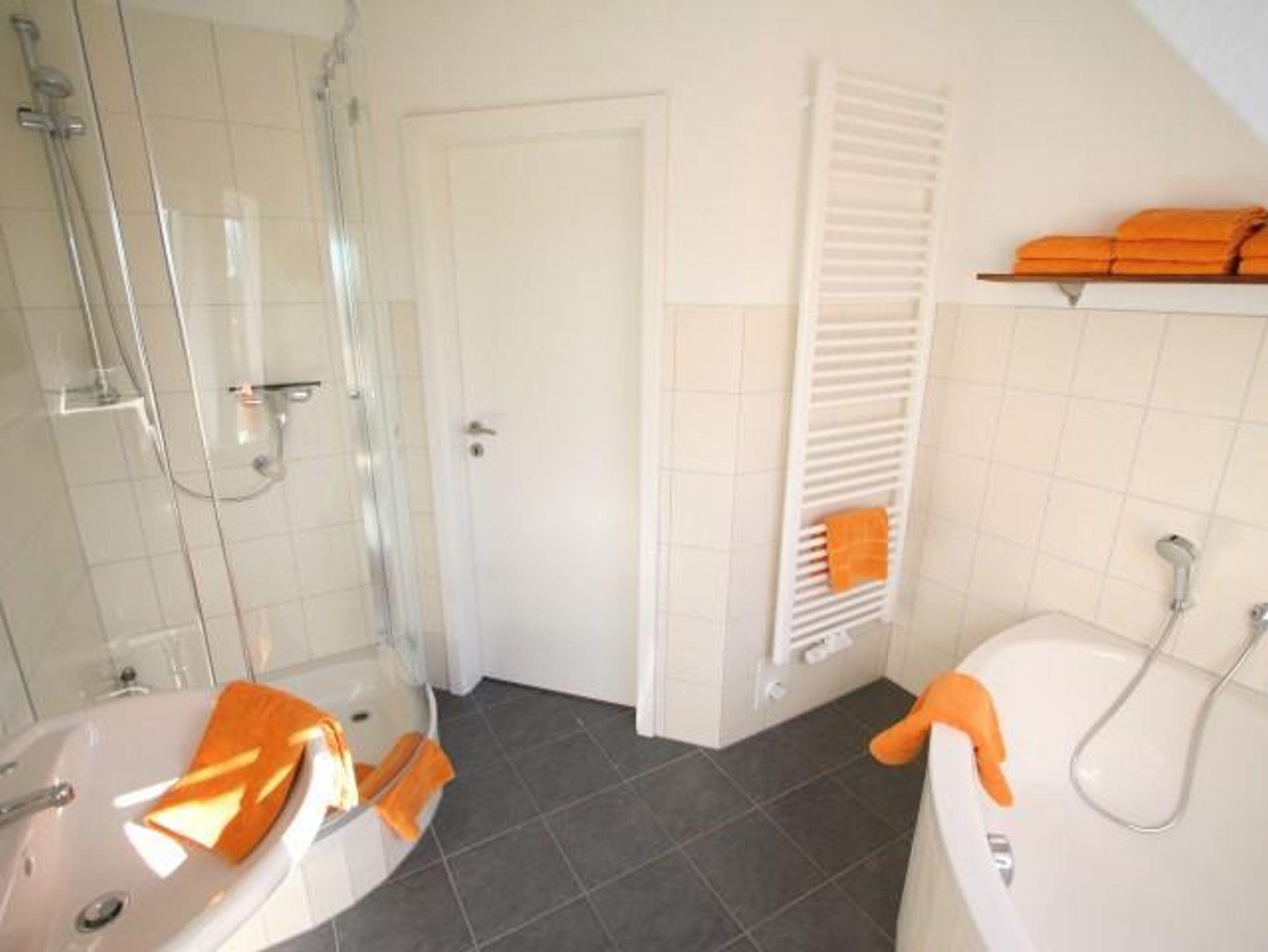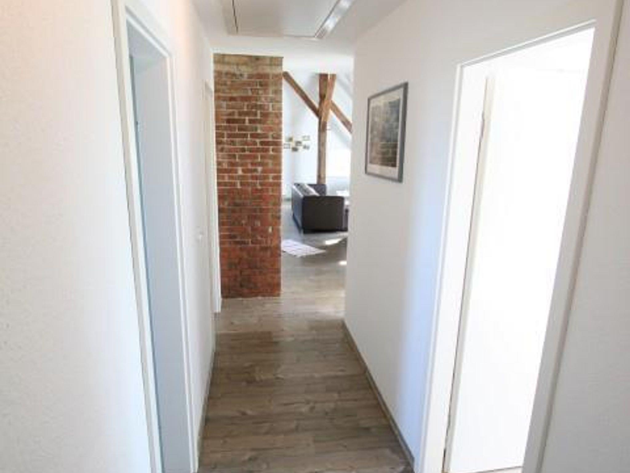 Die Ferienwohnung verfügt über einen großen, lichtdurchfluteten Wohnraum mit hoher Decke und sichtbarer Balkenlage und einen traumhaften Ausblick auf die Küstenlinie, dem Marschland und den alten Obstgarten. Der Wohnraum ist ausgestattet mit Sat-Farb-TV, DVD, Stereoanlage sowie einer Auswahl an Büchern und Spielen. Die offene Küche mit kleinem Tresen ist mit Geschirrspüler, Backofen, Ceranfeld, Kühlschrank, Gefriereinheit, Toaster, Kaffeemaschine, Wasserkocher und selbstverständlich ausreichend Geschirr und Zubehör ausgestattet. Die drei Schlafräume sind mit Doppelbett bzw. französischem Bett liebevoll hergerichtet. Das moderne Vollbad hat eine Eckbadewanne mit Panoramablick.
