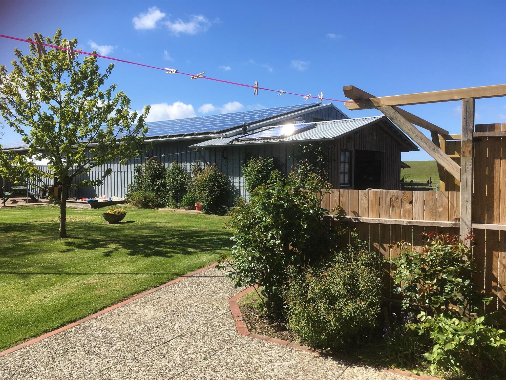 Entspannen Sie sich in unserem Garten während Ihre Kinder auf unserem Hof mit Schaukel, Sandkiste, Fußballkicker oder den Go-Carts spielen. Zum Joggen lädt der kilometerlange Seedeich geradezu ein.