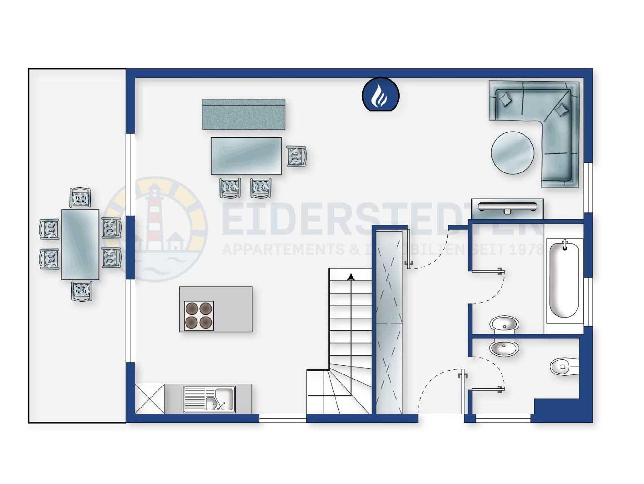Im weitläufigen Garten mit Spielgeräten finden Groß und Klein Erholung. Drei Pkw-Stellplätze und ein abschließbarer Fahrradschuppen sind vorhanden. Zum Ordinger Strand oder ins Dorfzentrum von St. Peter sind es nur 10 Minuten mit dem Auto.
