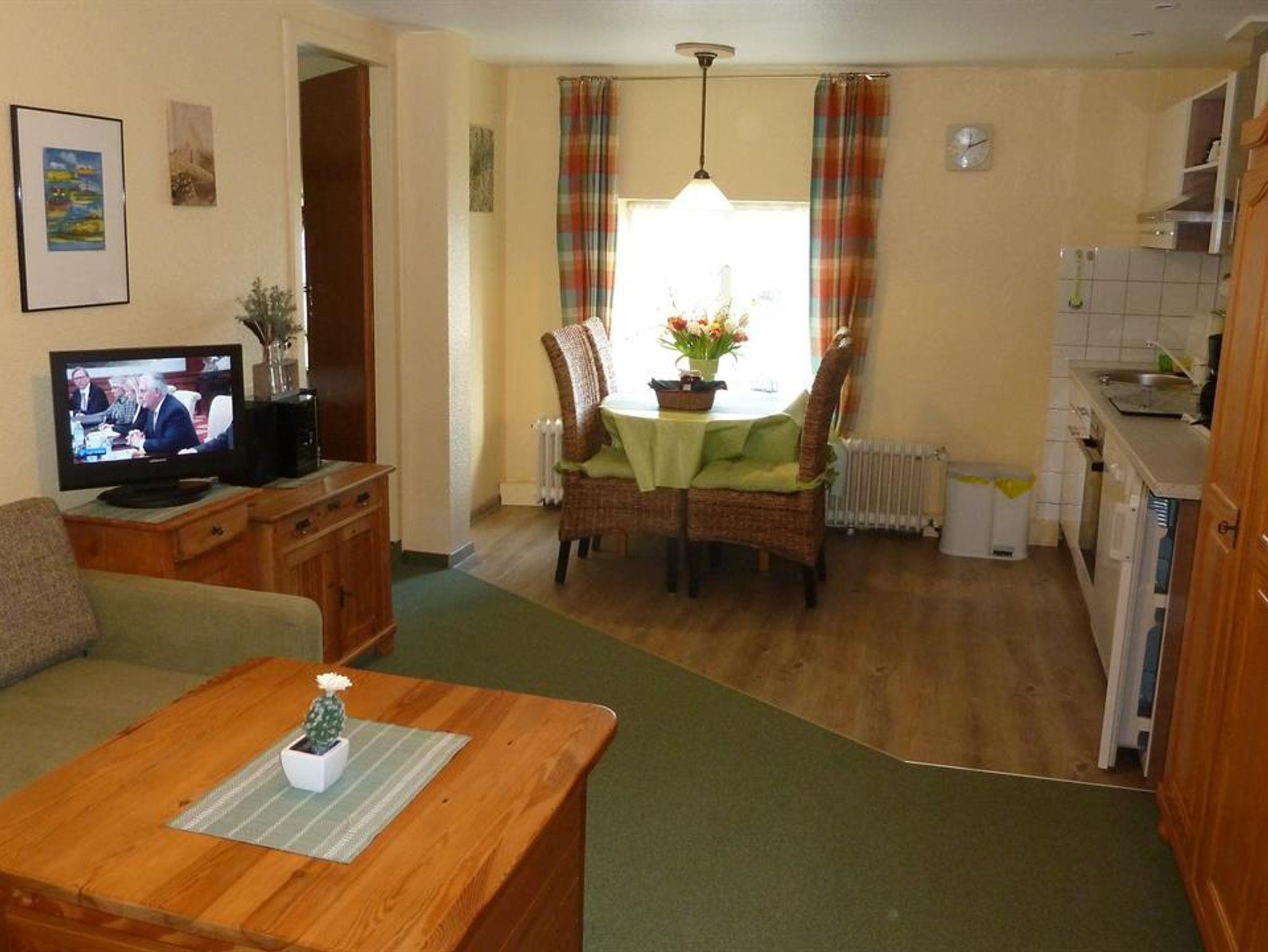 Die behagliche Ferienwohnung hat einen Wohn/Essraum mit kompl. ausgestatteter Küchenzeile, 1 Elternschlafzimmer mit Doppelbett,Dusche/WC. 1 Alkoven mit Etagenbett für Kinder. Farb-TV und Stereoanlage vorhanden. Waschmaschine und Trockner für alle Gäste im Haus (gegen Gebühr). Auf Wunsch auch Bettzeug für Allergiker