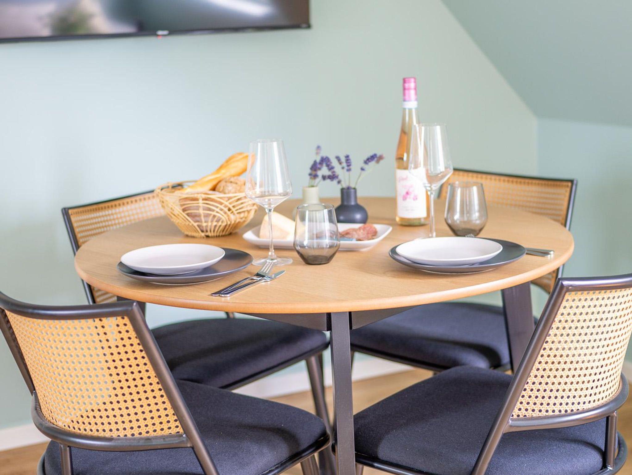 Essbereich: Eßtisch und vier Stühle