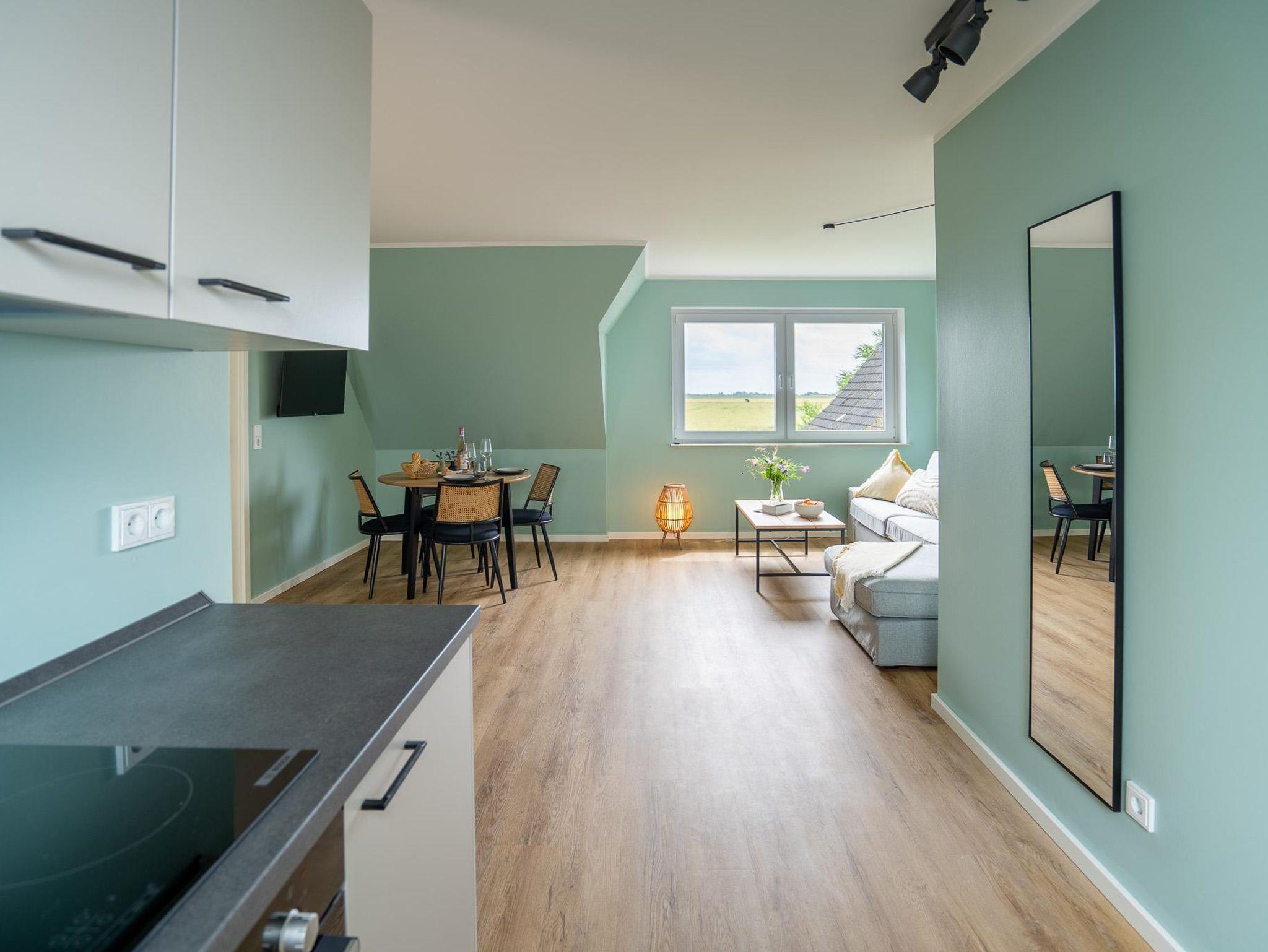 Gemütliche Ferienwohnung am Deich nahe der Nordsee mit moderner Ausstattung und viel Natur zum Entspannen.