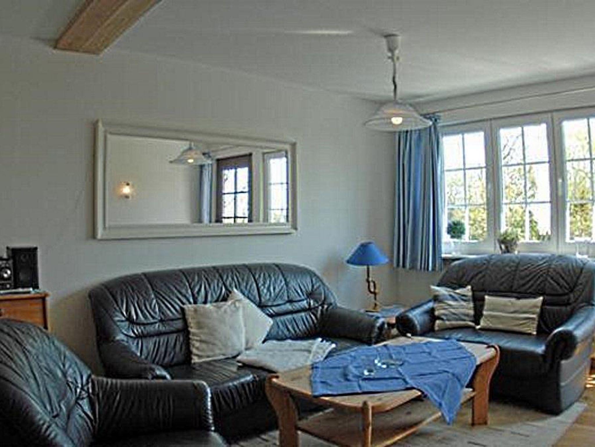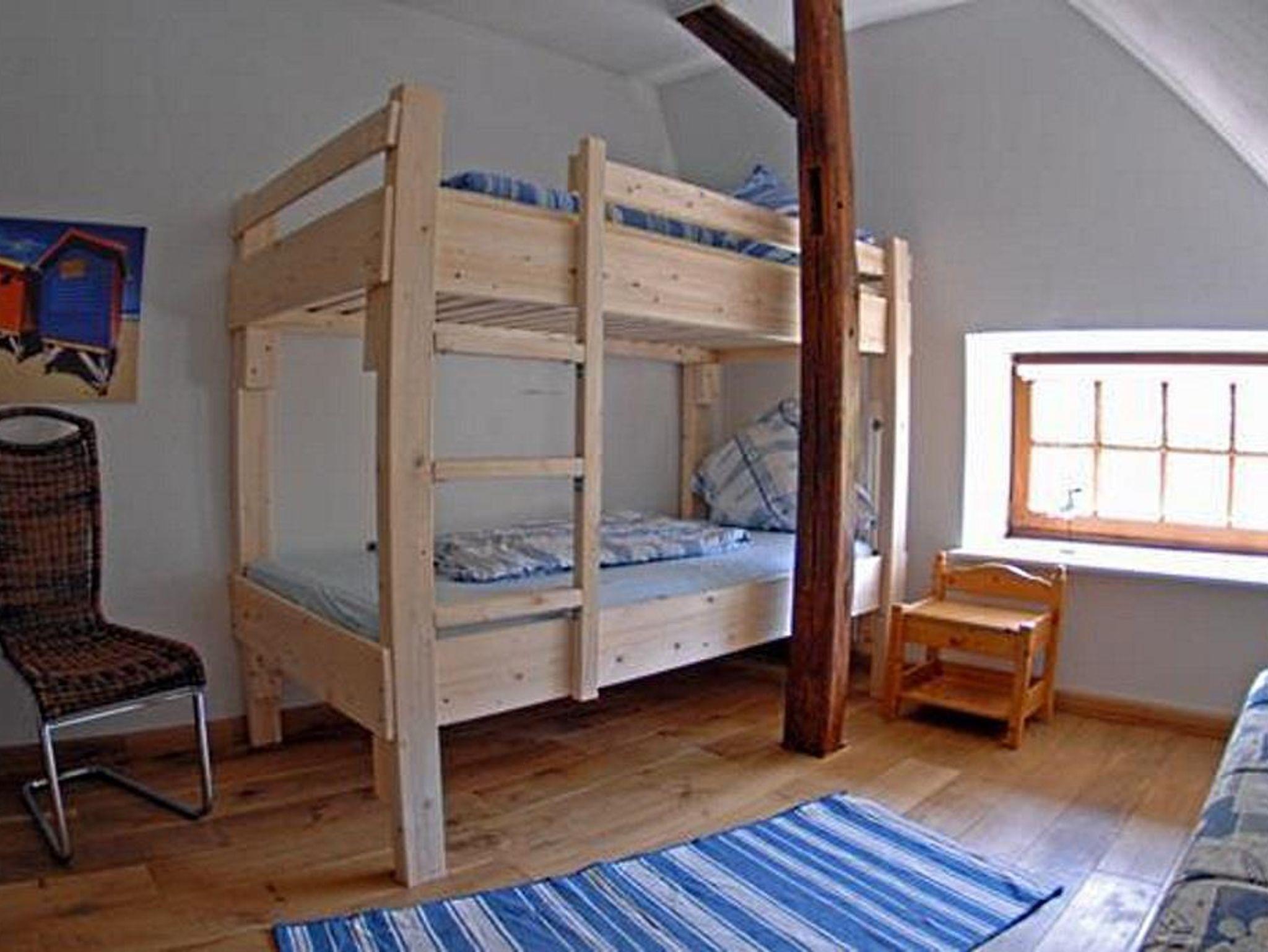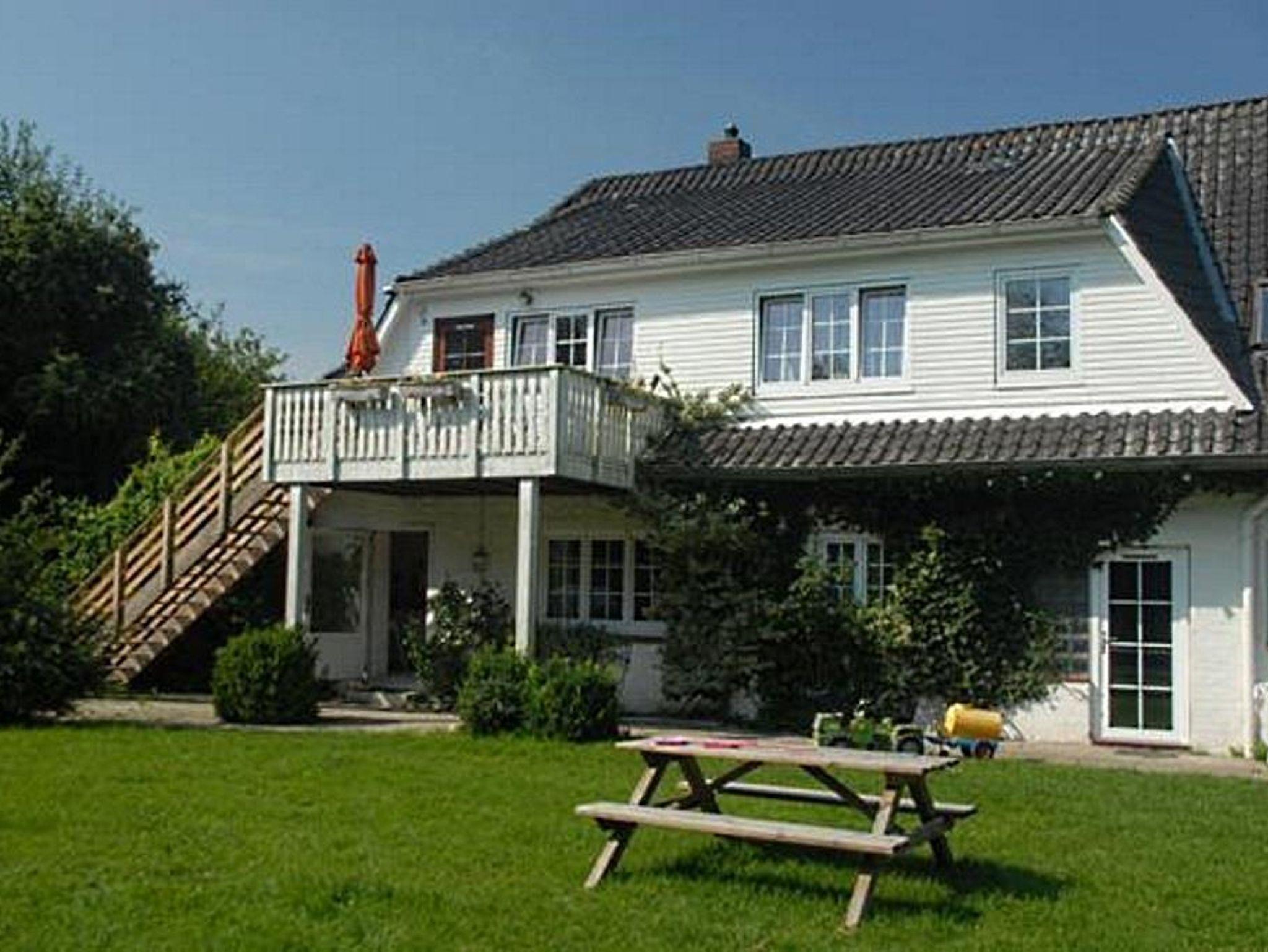 Sehr schöne helle Ferienwohnung für bis zu 6 Personen im Obergeschoß, ca. 60 qm. Großer Wohnraum mit Couchgarnitur, Esstisch, neuem 40-Zoll-Flachbild-TV und Kompaktmusikanlage. Die Küche wurde Anfang 2017 komplett erneuert und ist sehr hochwertig ausgestattet, u.a. mit Spülmaschine, Kühlschrank mit Gefrierfach, Toaster, Kaffeemaschine, Mixer, Mikrowelle sowie Herd mit Ceranfeld und Backofen und einer großen Arbeitsplatte aus Granit. Die Wohnung wurde im Frühjahr 2014 umgestaltet und renoviert. Der gesamte Wohn- und Schlafbereich verfügt über einen hochwertigen Holzdielenboden. Das Schlafzimmer wurde im Alkovenstil gebaut und beinhaltet ein Doppelbett. Das Kinderzimmer bietet Platz für 4 Personen (2 Etagenbetten und 1 Schlafsofa). Bettwäsche und Handtücher sind inklusive. Kinderbett und Hochstuhl stehen kostenlos zur Verfügung (auf Anfrage). Vor der Wohnung befindet sich ein großer sonniger Balkon mit Gartenmöbeln und einem sehr schönen Ausblick über den idyllischen Garten. Die Ferienwohnung erreicht man über eine große Außentreppe.