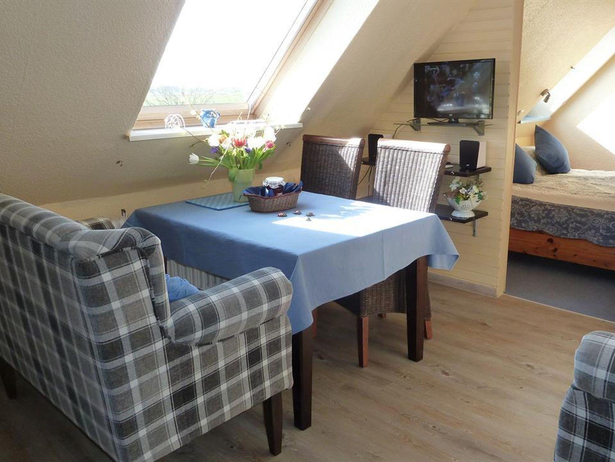 Der Mittelpunkt des Aufenthaltraumes ist der Billardtisch. Die Möbel sind aus einem alten Kirchspielkrug. Hier können Sie gemeinsam Fernsehen schauen. Über eine bequeme und breite Treppe gelangen Sie in das Obergeschoss. Die Galerie ist als Spielzimmer eingerichtet. Hier kommt bestimmt keine Langeweile auf. Wer gerne lesen möchte, findet hier eine große Auswahl an Kinderbüchern, Romanen und Krimis.