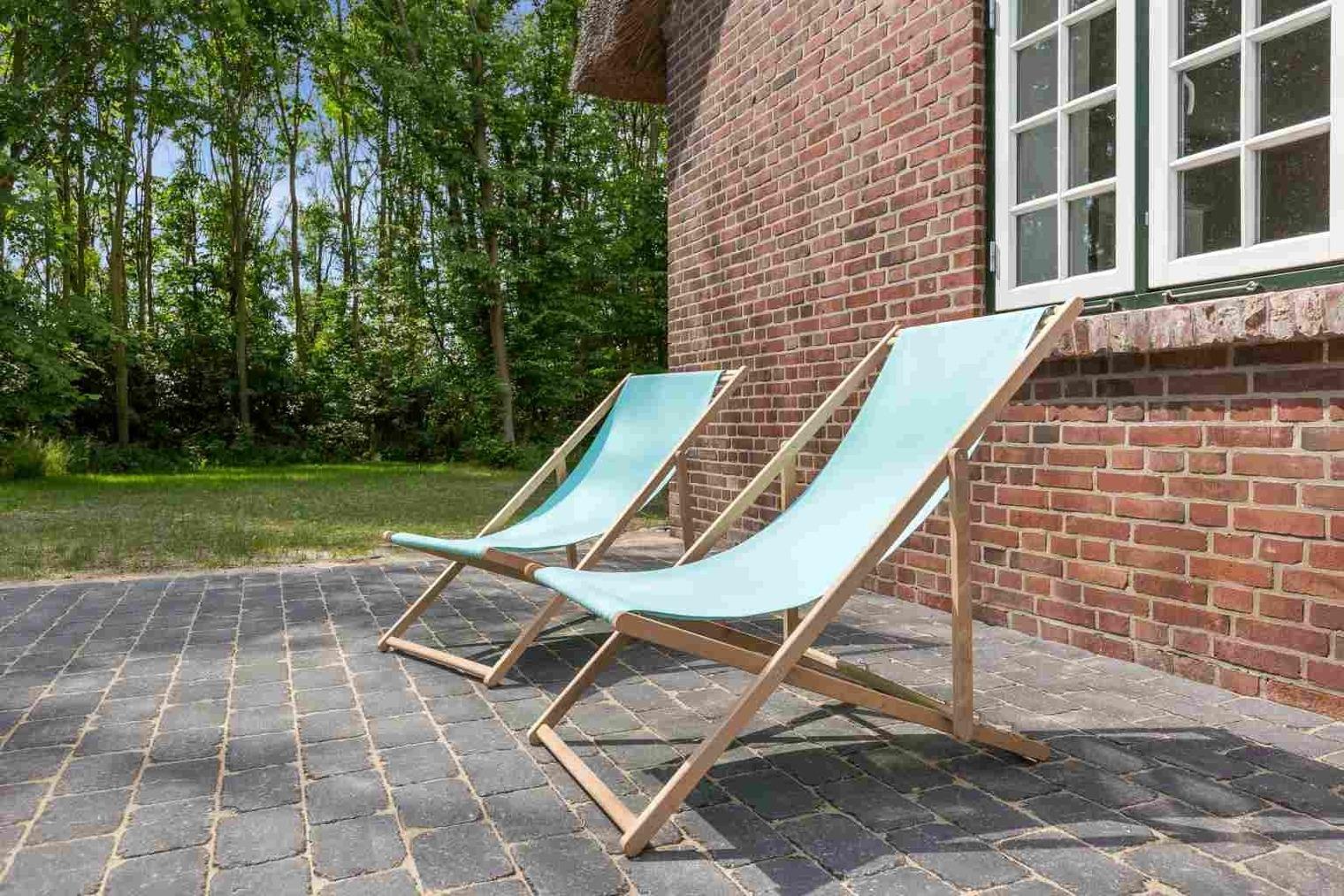 Das weitläufige Gelände liegt lediglich 5 Auto- oder 10 Fahradminuten vom beliebten breiten Sandstrand von Sankt Peter-Ording entfernt. Die ehemalige Familienwohnung des Hofes ist freundlich, hell und hat eine fröhliche Athmosphäre. Die ungewöhnlich schöne Wohnung ist geräumig und komfortabel für 4 Personen geeignet. Sie verfügt über eine großzügige nach Süden ausgerichteteTerrasse mit hochwertigem Gartenmobiliar. Im Garten stehen zusätzlich Strandkörbe und Liegestühle für die Gäste zur Verfügung. Man kann bei Bedarf auch etwa zum Essen oder zum Treffen mit Freunden unter dem offenen Reetdach in der großen Lohdiele sitzen, die sich in der Mitte des Hauses befindet und allen Gästen zur Verfügung steht.
