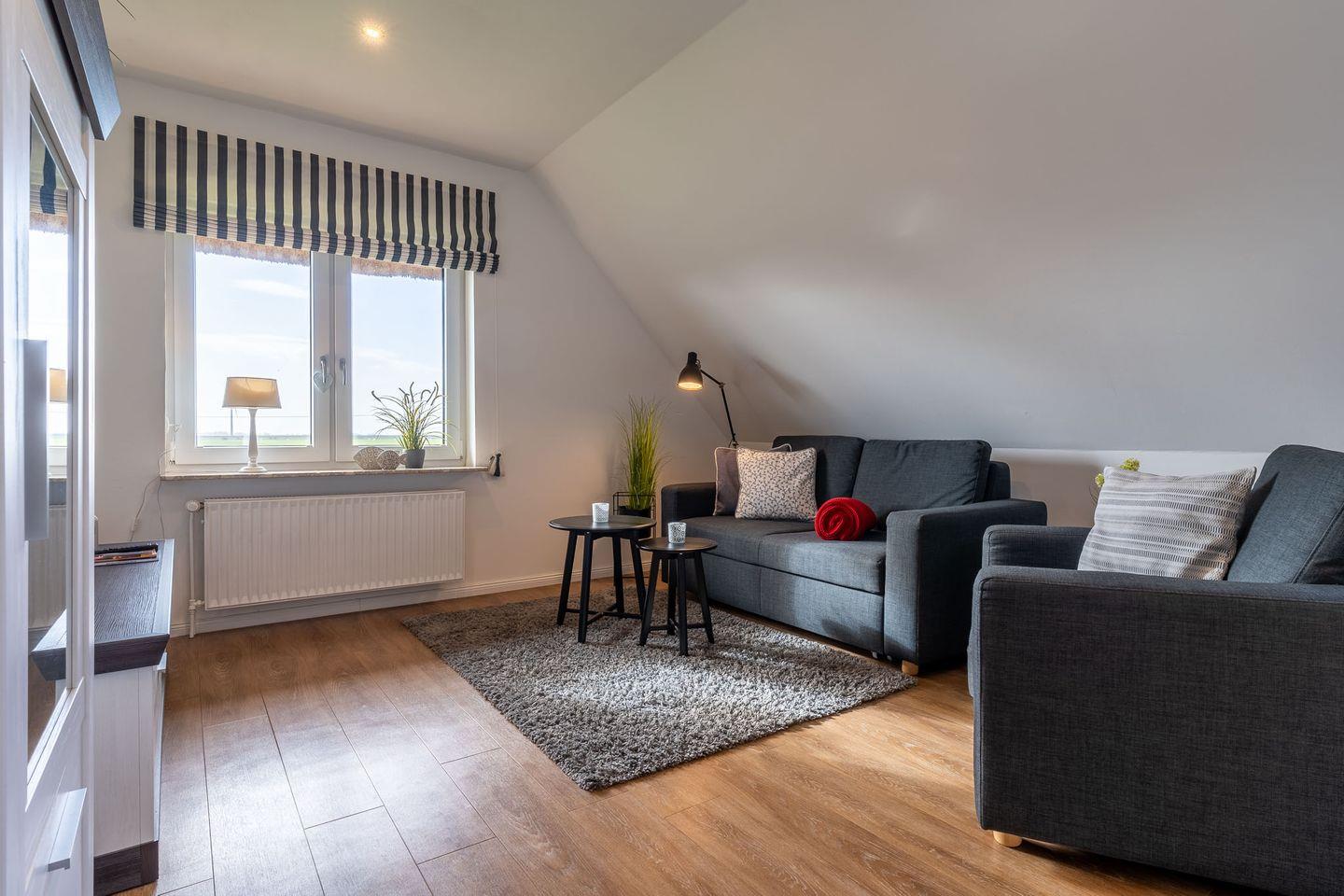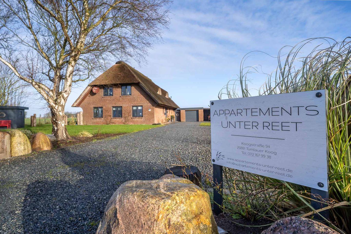 Moderne 2-Zimmer Reetdach-Dachgeschosswohnung mit Balkon und Weitblick nahe St. Peter-Ording.