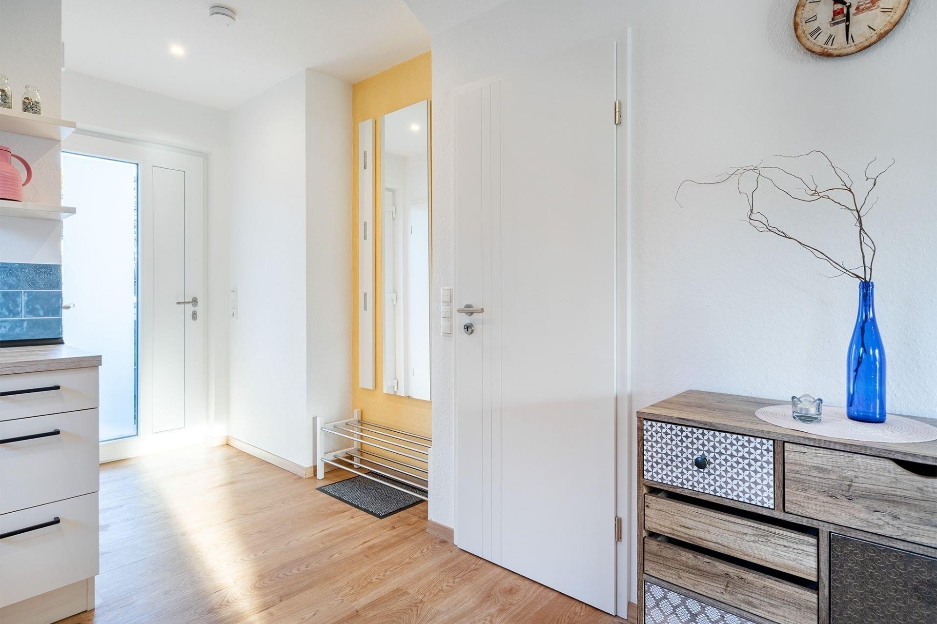Doppelhaus direkt am Badesee Aurich-Tannenhausen.Das modern und liebevoll eingerichtete Doppelhaus Nitschke - FeWo Flut bietet die Möglichkeit, im Herzen Ostfrieslands Ihren Urlaub zu genießen. Die Ferienwohnung in einer unserer beiden in 2022 neu gebauten Doppelhäusern liegt direkt am idyllischen Badesee in Aurich-Tannenhausen. Jede Doppelhaushälfte verfügt über ~60 m² Wohnfläche und bietet Platz für bis zu vier Personen. Das offengestaltete Erdgeschoss mit Koch-/ Wohn- und Essbereich sowie die daran anschließende Terrasse laden zum Wohlfühlen ein. Im Obergeschoss befinden sich zwei gemütliche Schlafzimmer und ein großes Tageslichtbad mit begehbarer Dusche, Waschbecken und WC. Parkplatz für PKW ist direkt am Haus. Größere Familien dürfen gerne beide Doppelhaushälften zusammen reservieren.
