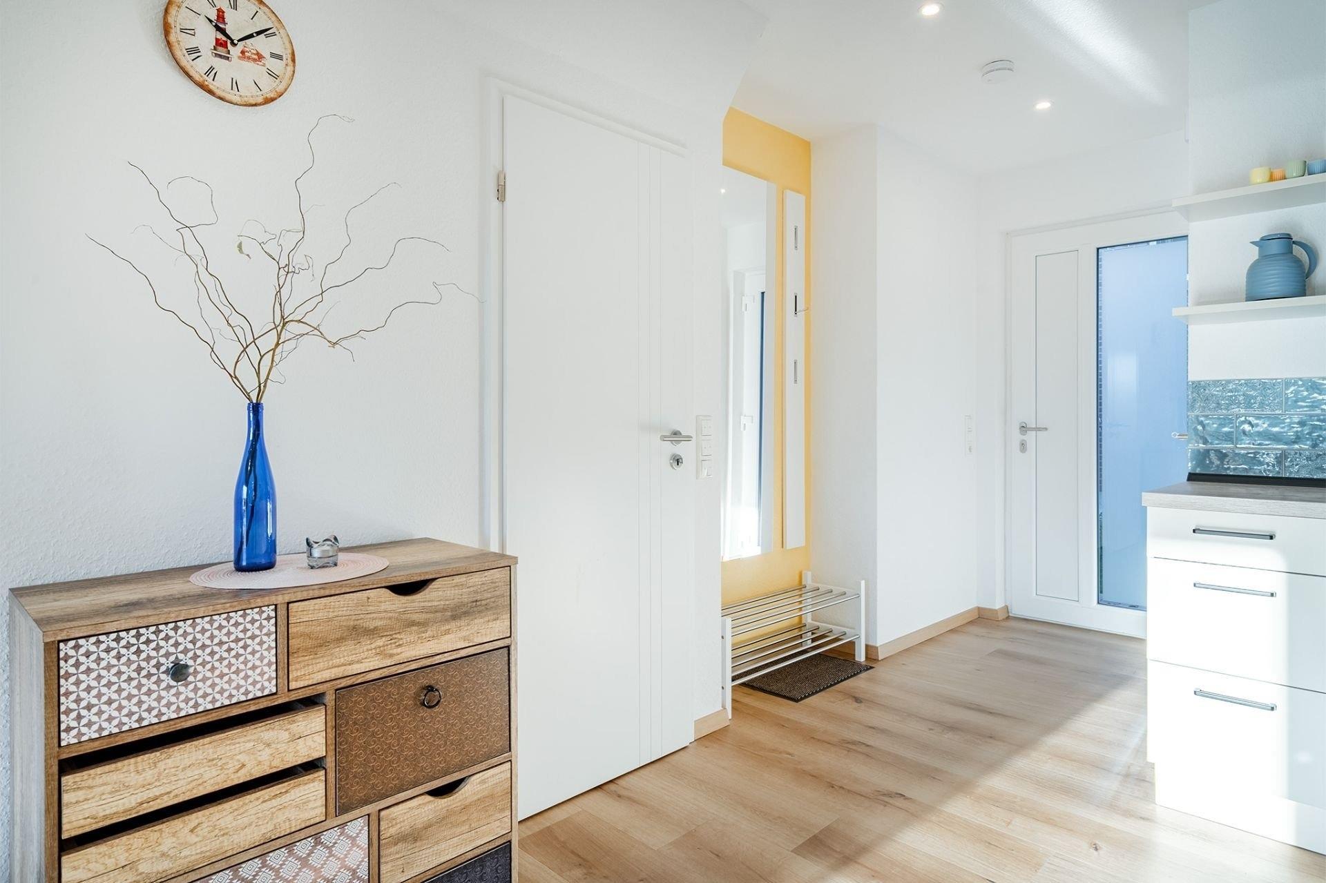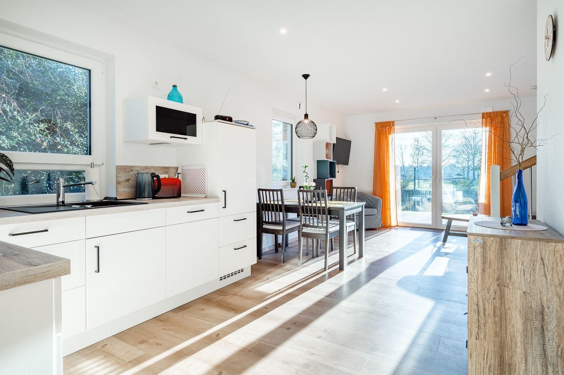 Doppelhaus direkt am Badesee Aurich-Tannenhausen.Das modern und liebevoll eingerichtete Doppelhaus Nitschke - FeWo Watt bietet die Möglichkeit, im Herzen Ostfrieslands Ihren Urlaub zu genießen. Die Ferienwohnung in einer unserer beiden in 2022 neu gebauten Doppelhäusern liegt direkt am idyllischen Badesee in Aurich-Tannenhausen. Jede Doppelhaushälfte verfügt über ~60 m² Wohnfläche und bietet Platz für bis zu vier Personen. Das offengestaltete Erdgeschoss mit Koch-/ Wohn- und Essbereich sowie die daran anschließende Terrasse mit direktem Seeblick laden zum Wohlfühlen ein. Im Obergeschoss befinden sich zwei gemütliche Schlafzimmer und ein großes Tageslichtbad mit begehbarer Dusche, Waschbecken und WC. Parkplatz für PKW ist direkt am Haus. Größere Familien dürfen gerne beide Doppelhaushälften zusammen reservieren.