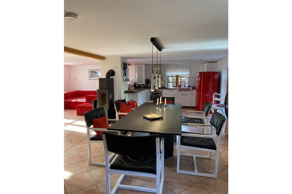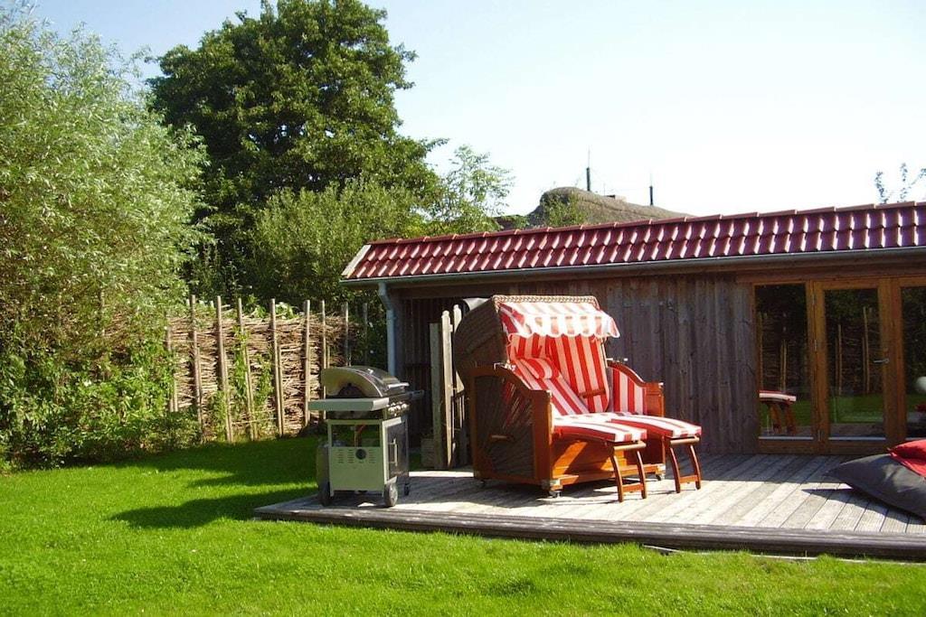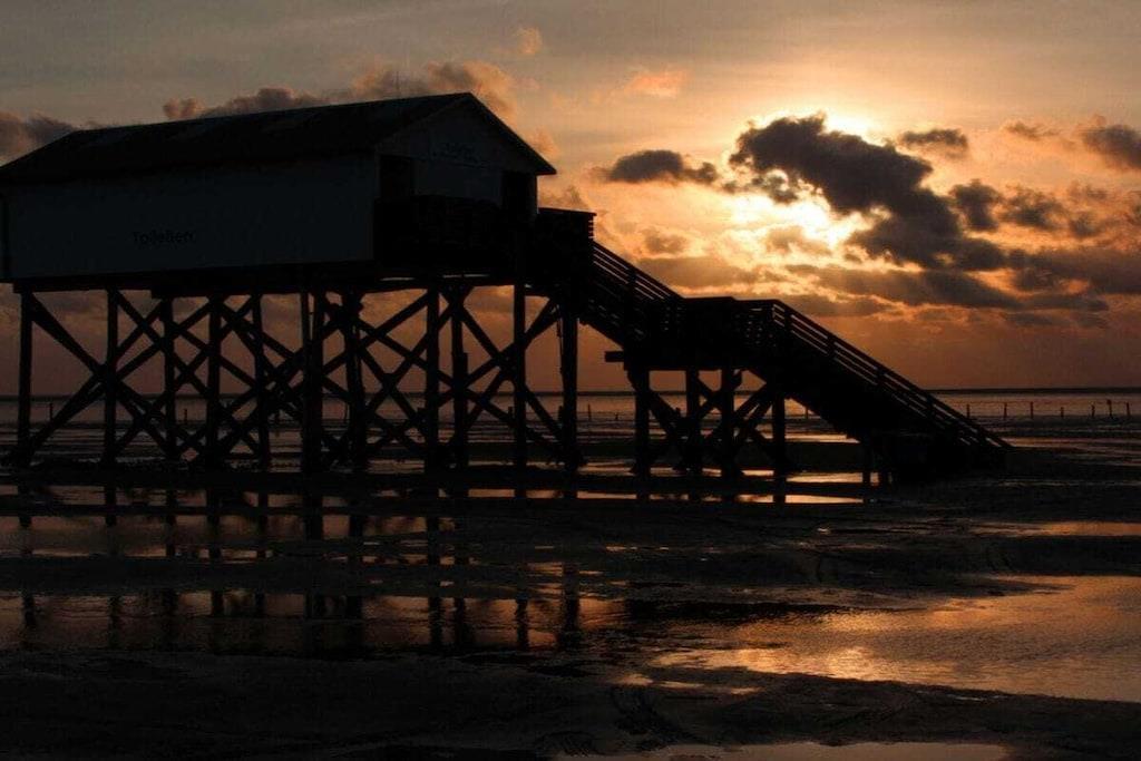 So mehr als 1.000 Worte) etwas interessantes und sie sagen JAAAAA - das isses. Vielleicht auf BWir haben unser 'Hide-Out' so eingerichtet, dass wir jederzeit ankommen und loslassen können - denn wer will schon die ersten Urlaubstage damit verbringen, zuerst einmal 'die Bude auf Vordermann zu bringen'. Dazu gehören für uns erst mal eine komplette Einrichtung. Von A - wie Alkohol - (es gibt eine Bar, die jeder Gast nach seinem Geschmack wieder auffüllt), über B - wie Besteck (Messer, Gabel, Löffel, Teller - und alles was in einem modernen Haushalt gehört, inkl. Toilettenpapier) bis Z wie (Zündhölzer für den Kamin oder auch einen 'Zaunabereich...)'. Sagen Sie uns, wenn sie meinen wir hätten etwas Wichtiges vergessen...wir sind offen für Anregungen. Im Ernst, wir sparen uns hier die üblichen Aufzählungen und 'Marken-Name Droppings - die kommen eh in der Beschreibung etwas später - nur Geduld. Unser Haus ist etwa 130 m² groß, hat einen gemütlichen offenen Wohn- Essbereich, 4 Schlafzimmer 1 Vollbad mit Badewanne, Dusche und ein separates WC im Dachgeschoss. Das ca. 1.500 m² große Grundstück ist angelegt - nach vorne mit einer Auffahrt, einem Carport und einer Rasenfläche mit Steinterrasse - nach hinten mit uneinsehbarem Garten (landestypisch mit Weidengeflecht eingefasst), Holzterrasse und einem Saunaanbau. Gartenbeleuchtung, Gasgrill, Gartenmöbel, Liegen und was sie sonst noch so brauchen um das Ganze entspannt genießen zu können - sind alle da - versprochen. Das Haus ist ruhig am Ortsrand von Tating gelegen. Sankt Peter-Ording erreichen Sie innerhalb von 8 km, dort können Sie wunderbar alle Dinge machen, die ein Nordsee Kurbad so anbietet - und natürlich an den wunderbaren Strand gehen und fahren. Aber da haben sie sich bestimmt schon im 'Internetz' 'schlau gemacht. Was wir dazu an Informationen noch beitragen können, finden sie ebenfalls weiter unten in den Beschreibungen - dergl. Ausflugsziele, etc. pp. Bitte nicht vergessen - damit Ihr Urlaub auch wirklich schön wird (sozusagen unvergesslich im besten Sinne...) weisen wir an dieser Stelle (ganz untypisch bei allen Schwärmereien die sie bereits gelesen haben und die auch noch kommen) vorsichtig darauf hin, dass es manchmal 'richtiges Schietwetter' - leider auch im Sommer - an der Nordsee geben kann. Das können auch wir leider nicht beeinflussen - hat uns auch nie wirklich 'genervt' - wenn wir hier waren, wollten wir genau an diesem Ort sein - flaches Land, Ebbe und Flut, rauhes Klima - Nordsee eben.. So - das war´s an dieser Stelle - bleibt uns nur noch Ihnen viel Spaß zu wünschen. Wenn sie sich für einen Urlaub an der Nordsee interessieren, entdecken sie vielleicht beim Lesen unserer Erfahrungen oder beim Betrachten der Bilder (sagen sowieald.