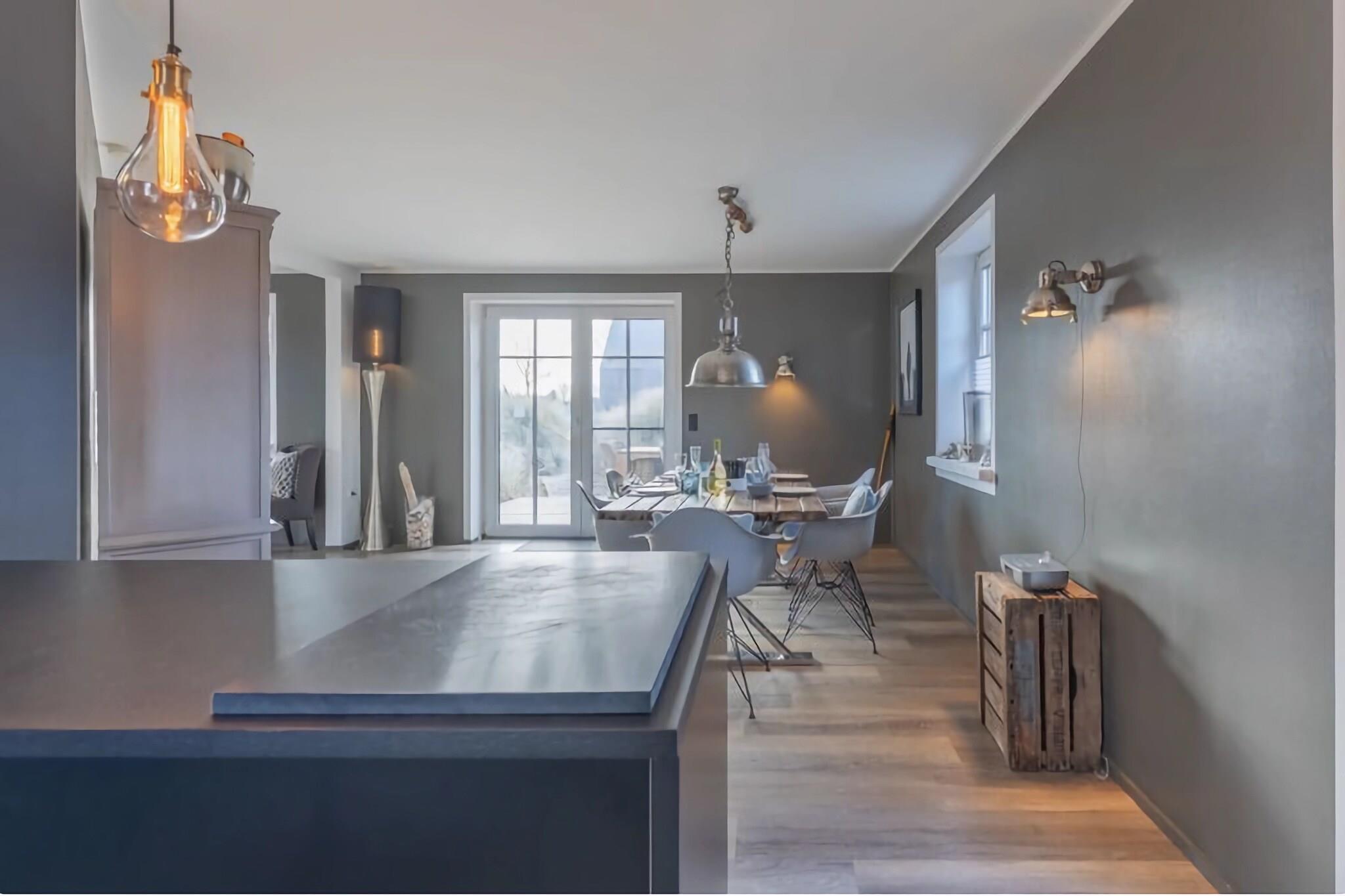 Das 110qm große Ferienhaus in Tating verteilt auf zwei Ebenen, bietet Platz für die ganze Familie. Genießen Sie die Zeit im offenen Wohn- & Essbereich oder kochen Sie zusammen in der gut ausgestatteten Küche. Draußen erwartet Sie ein 625qm großer Garten, der einer beeindruckenden Dünenlandschaft ähnelt. Dort können Sie im Strandkorb oder auf den zwei Liegen entspannen. Die Unterkunft verfügt über drei Schlafzimmer im Dachgeschoss. Ein Schlafzimmer verfügt über ein Bad ensuite mit bodentiefer Dusche und einer Handtuchheizung sowie einen Ankleidebereich. Im Erdgeschoss ist ebenfalls ein Duschbad, wo Sie eine Waschmaschine zu Ihrer freien Verfügung haben. Des Weiteren befinden sich vor dem Haus drei Parkplätze. Highlights: WLAN, verbrauchsabhängige Energiekosten, Wäschepaket, Endreinigung Das Ferienhaus liegt in dem ländlich geprägten Dorf Tating, unmittelbar vor den weitläufigen Sandstränden von St. Peter-Ording (8 Autominuten). Kleine Geschäfte, Bäckerei und Einkaufsmöglichkeiten für den täglichen Bedarf sind fußläufig erreichbar.