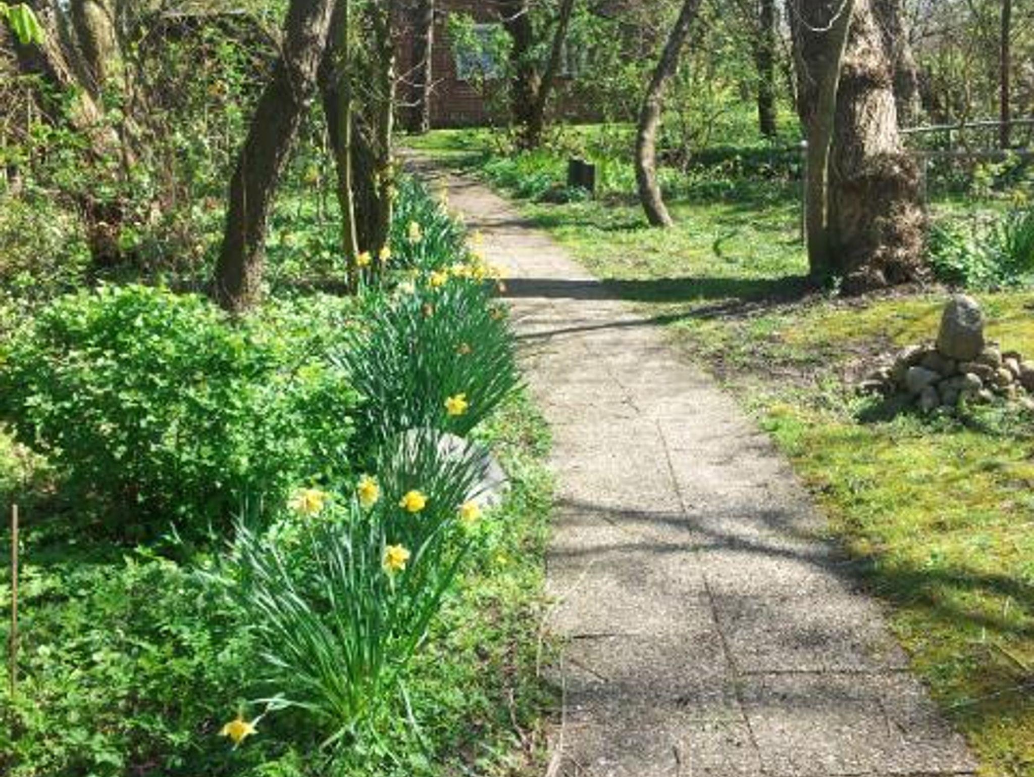 Das gemütliche Ferienhaus Bernstein in Tating bietet Naturgarten, Terrasse und nahen Strandzugang.