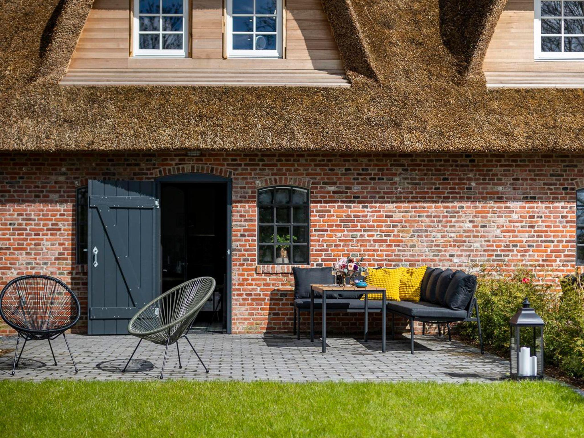 Exklusive Country Lodge Ole Steen mit Terrasse und Strandnähe in Tating, ideal für erholsamen Urlaub mit Hund.