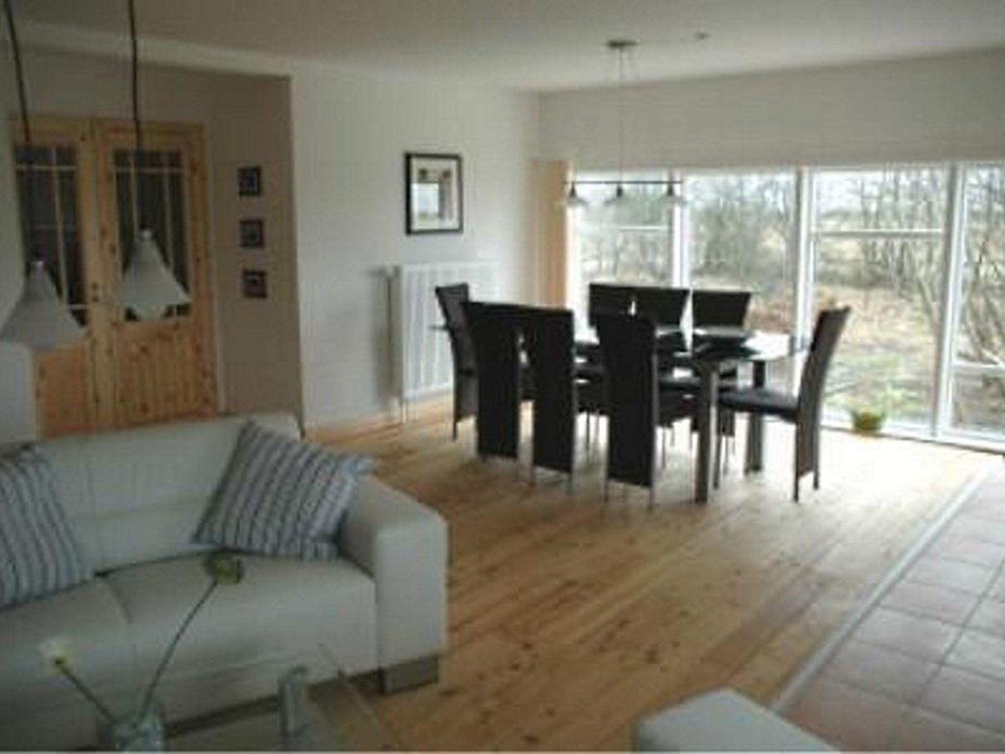 Das sehr große Panoramafenster bietet einen weiten Blick in den Garten und die sich weit hinziehenden Wiesen. In einigen Kilometern Entfernung kann man das Nordseeheilbad St. Peter-Ording erkennen.