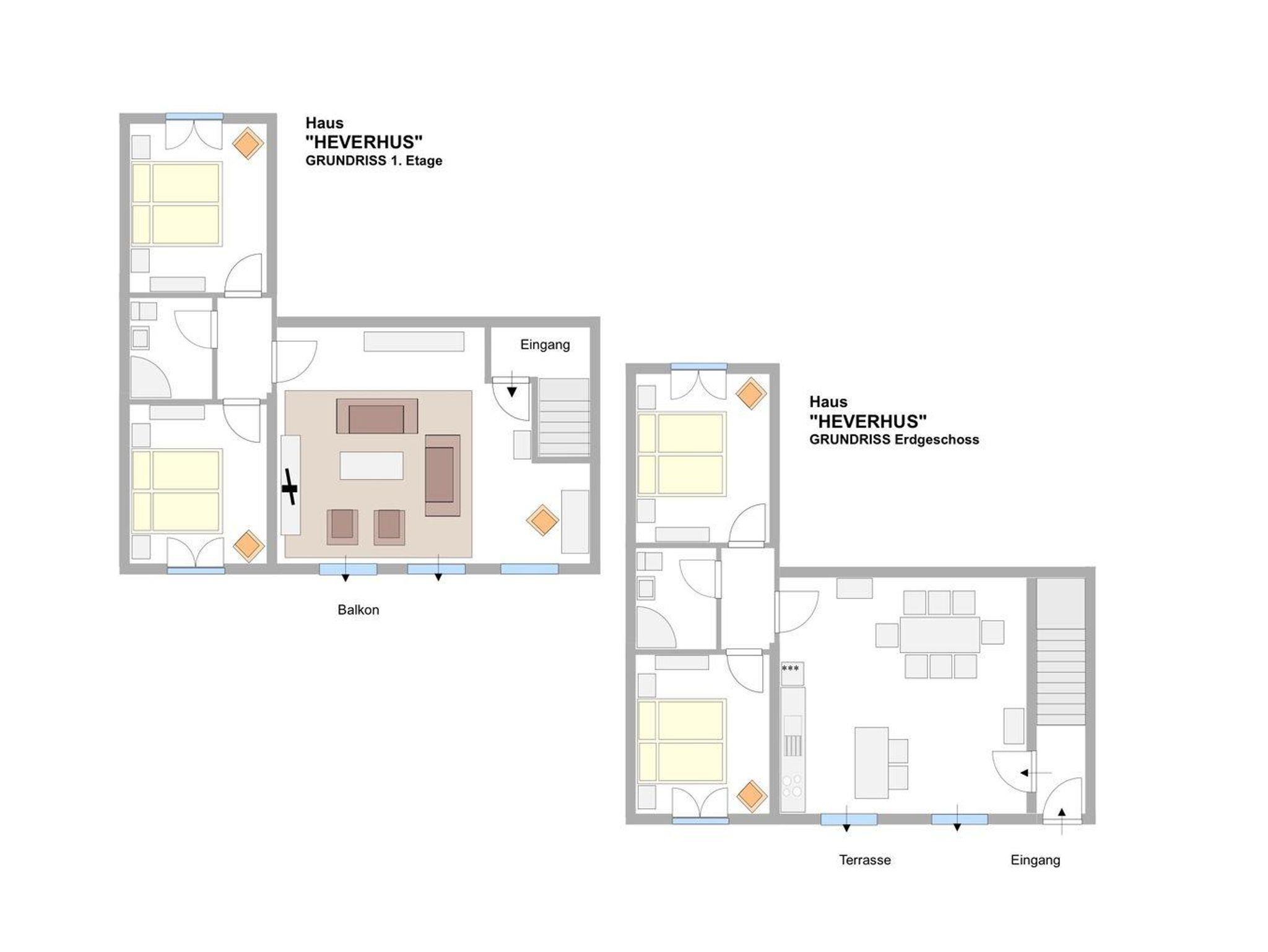 Das Ferienhaus „HeverHus“ ist als „Haus im Haus“ angelegt. Es ist 125 qm groß und erstreckt sich über zwei Ebenen. Das Haus bietet mit zwei Doppelschlafzimmern je Etage, einem geräumigen Duschbad auf jeder Etage, einer großen Wohnküche und dem komfortablen Wohnraum den notwendigen Wohnkomfort für entspannte Urlaubstage – auch in großer Runde (bis 8 Personen). Zu dem Haus „HeverHus“ gehört ein eigener Garten mit Terrasse und ein Balkon.