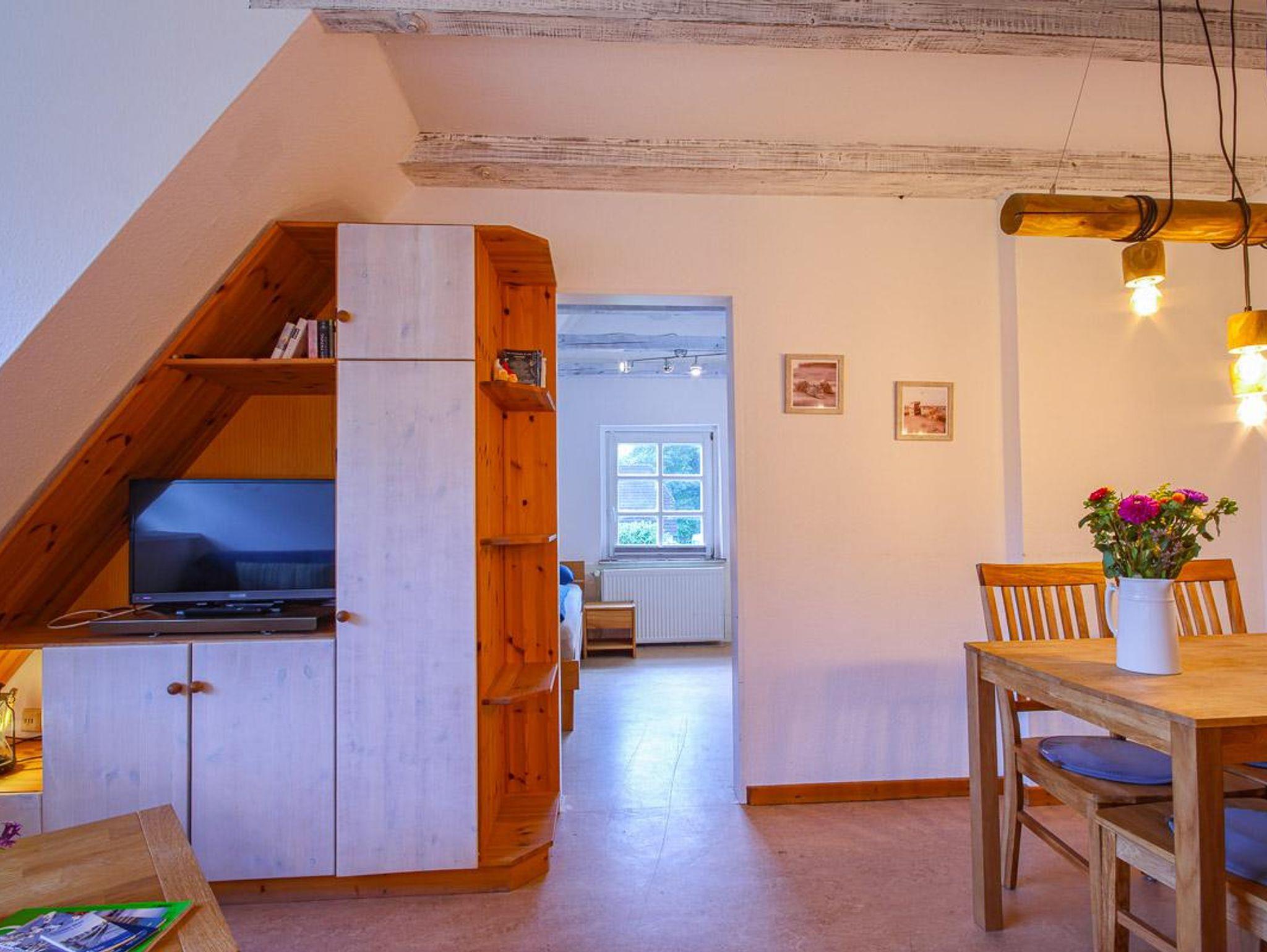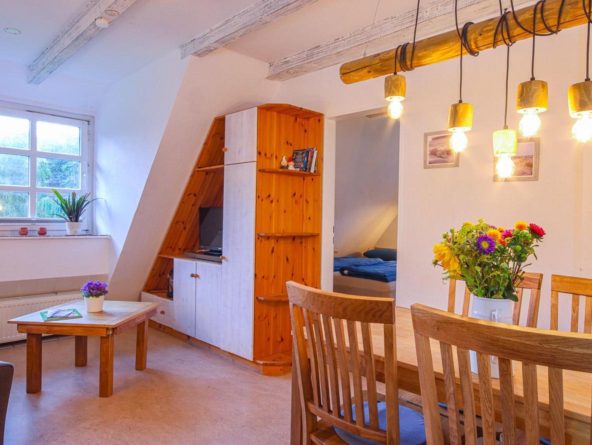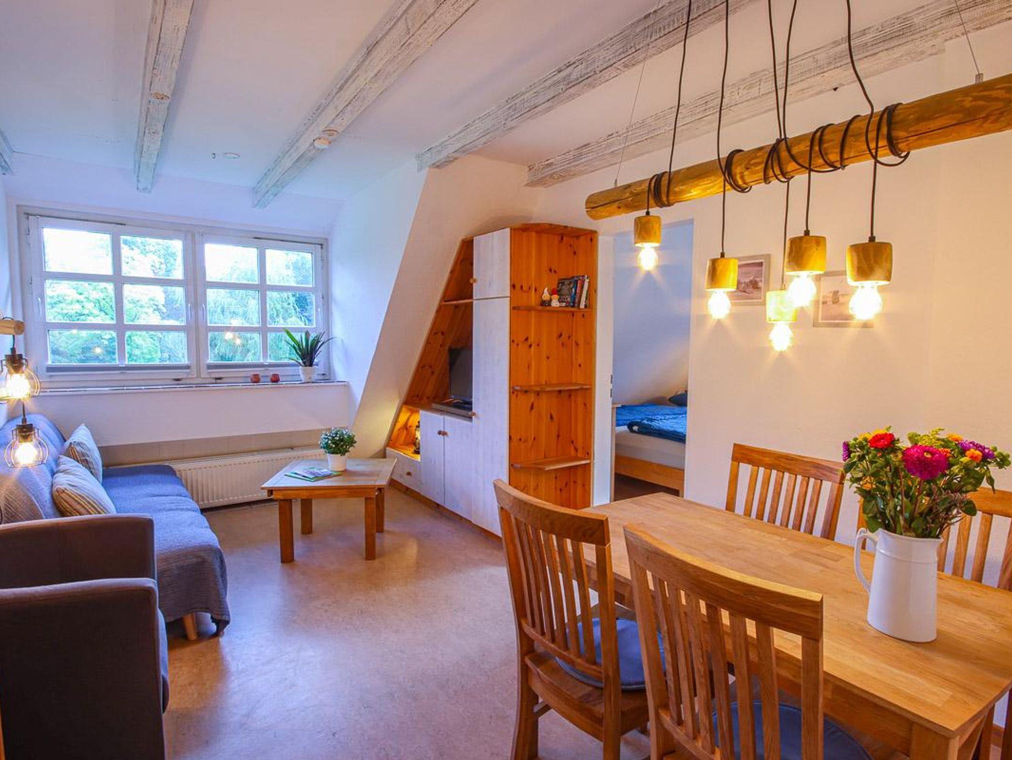 Die 2-Zimmer-Wohnung Eulennest mit Gartenblick befindet sich im 1. Obergeschoss und bietet mit einer Fläche von 42 m² Platz für bis zu 4 Personen.