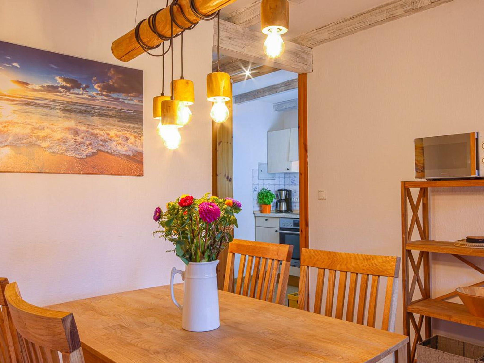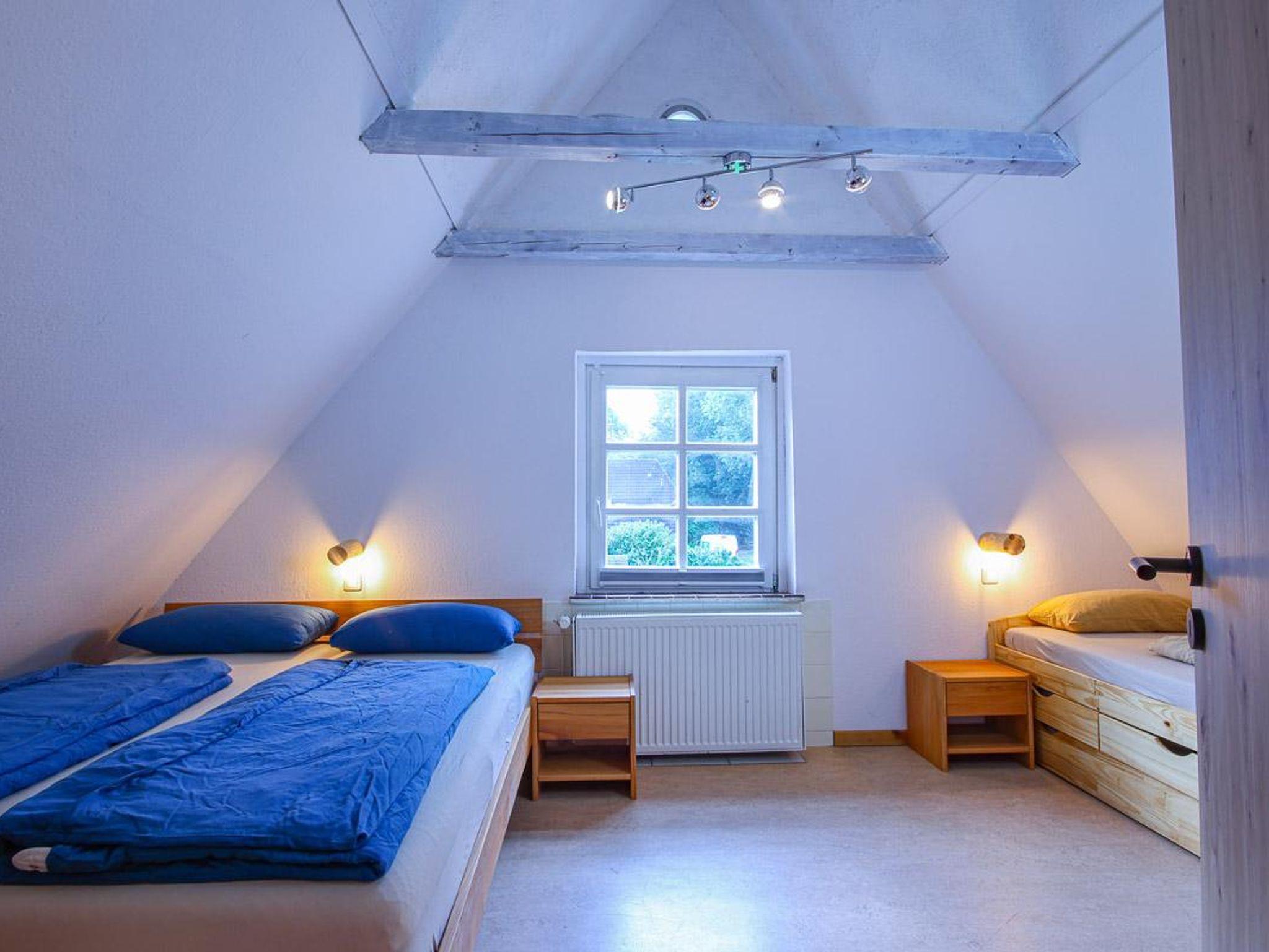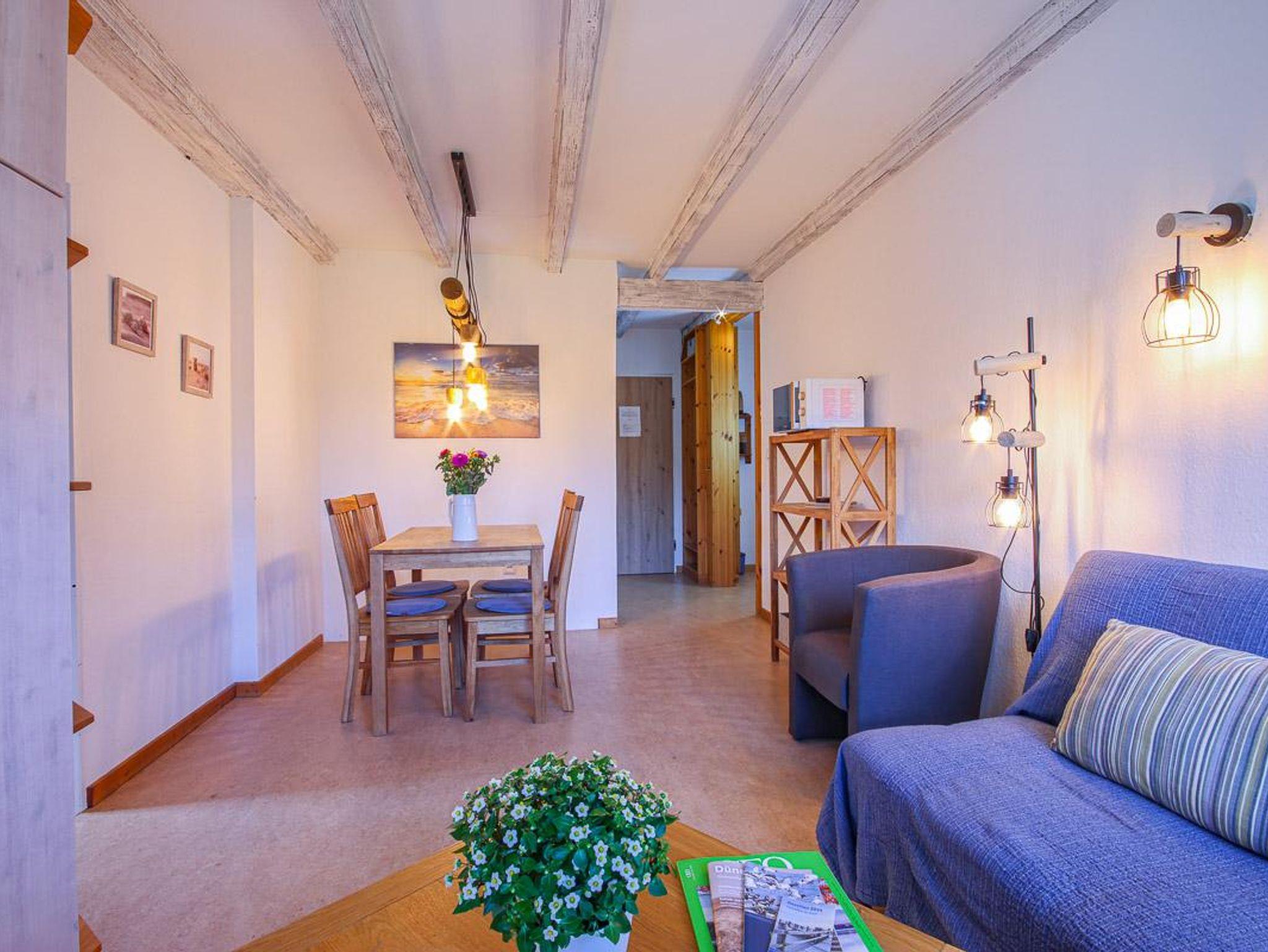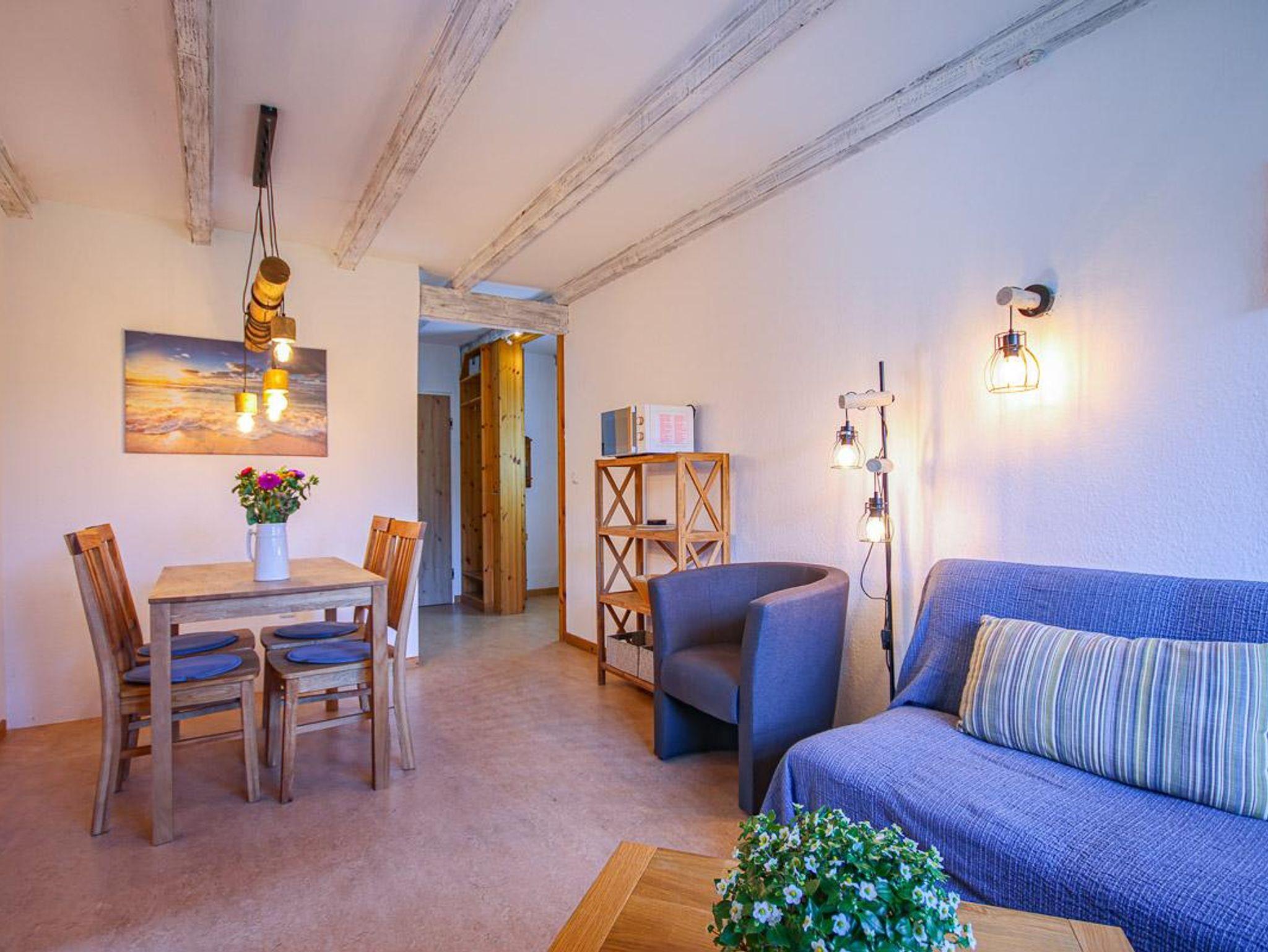 Die Ferienwohnung verfügt über einen gemütlichen Wohn-/Essraum mit separater Küche und einen separaten Schlafraum. In diesem befinden sich ein Doppelbett und zwei Einzelbetten. Im Wohnraum kann die Couch zusätzlich als Schlafmöglichkeit verwendet werden.