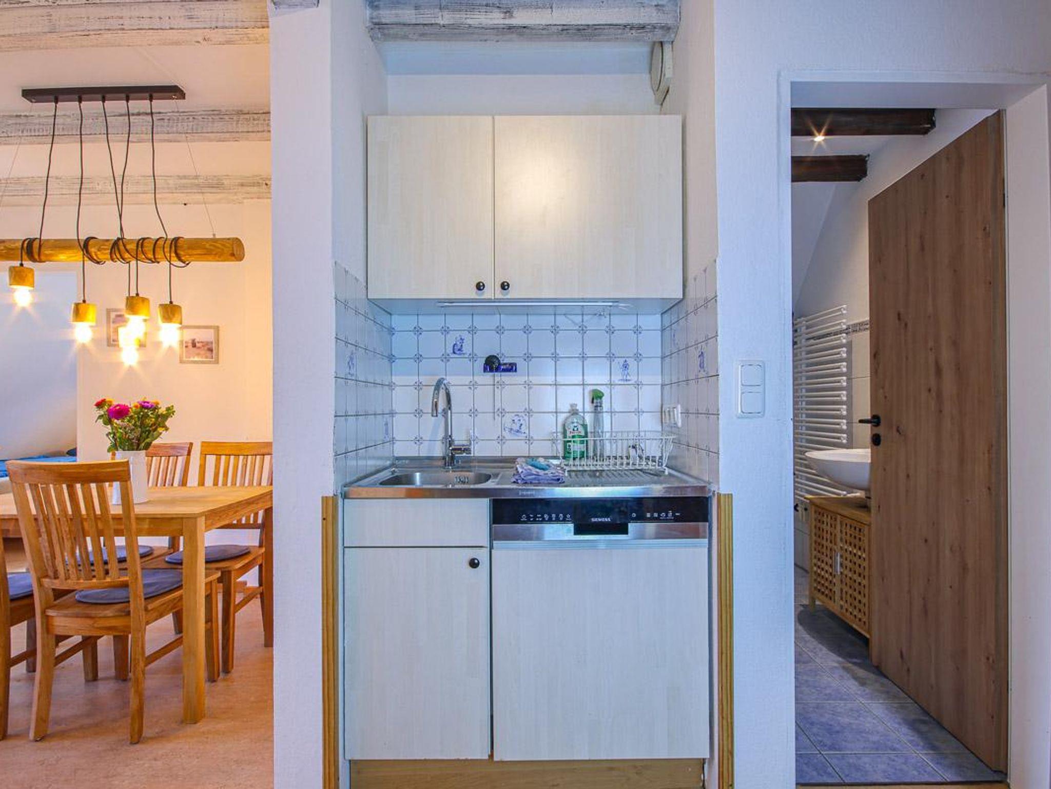 Zur Ausstattung gehören ein 4 Platten-Ceran-Kochfeld mit Backofen, Geschirrspüler, Mikrowelle, Kühlschrank mit Gefrierfach, Kaffeemaschine, Toaster, Wasserkocher und Flachbild-TV. Separates Duschbad mit Dusche, Badewanne und WC vorhanden. WLAN inklusive.