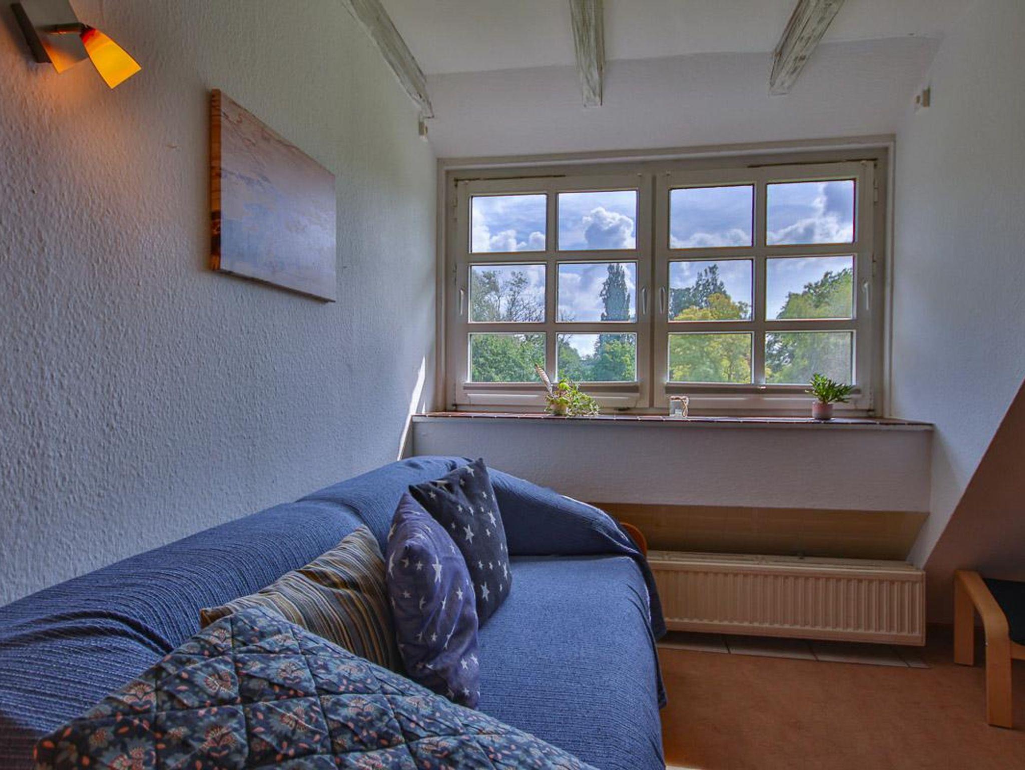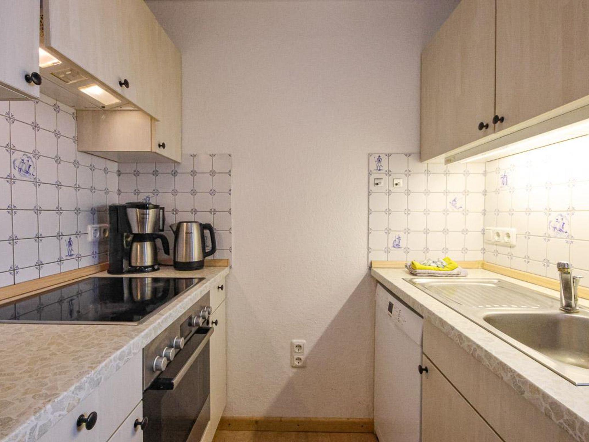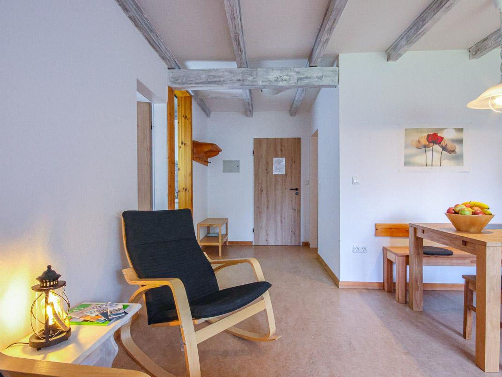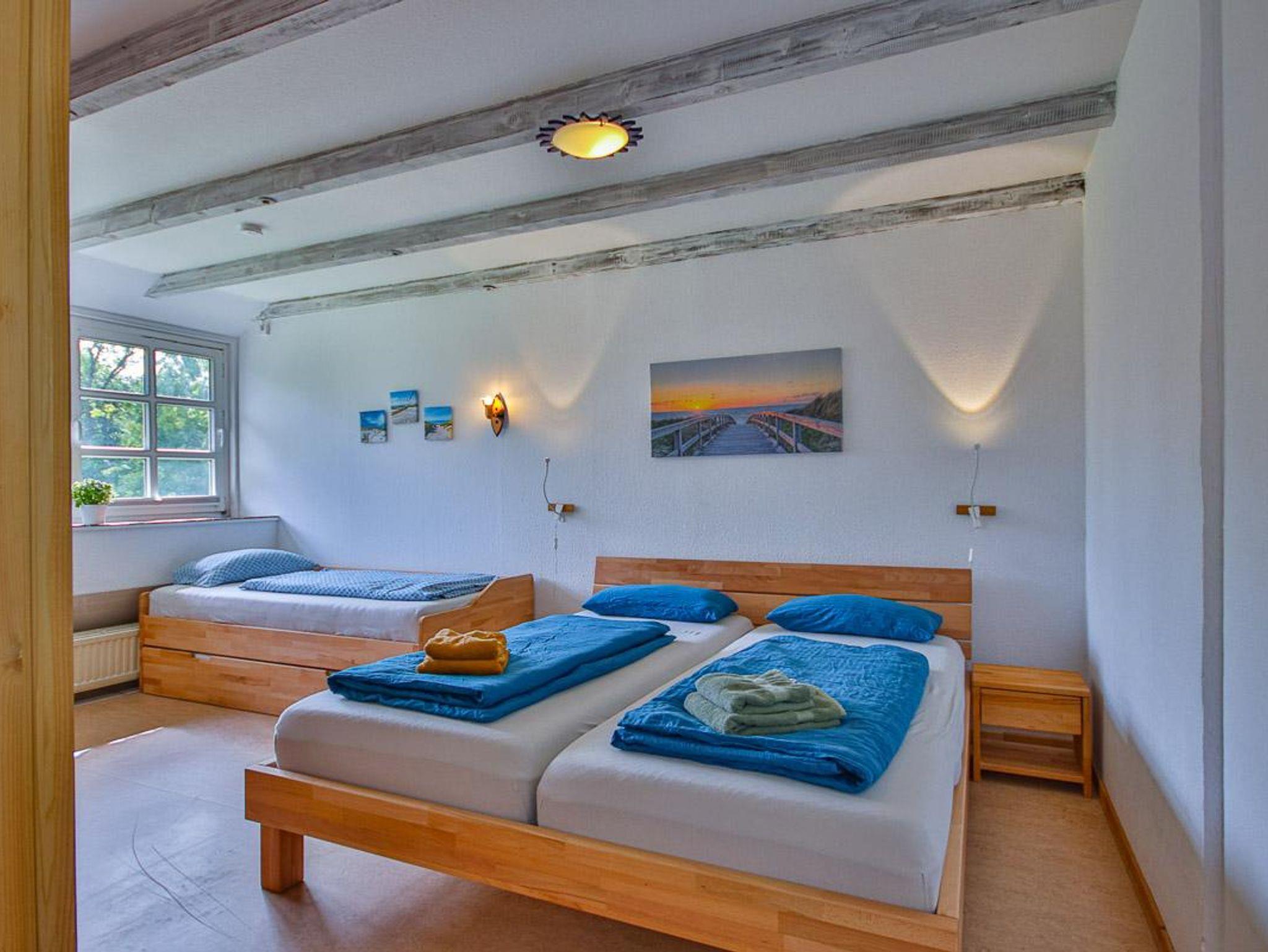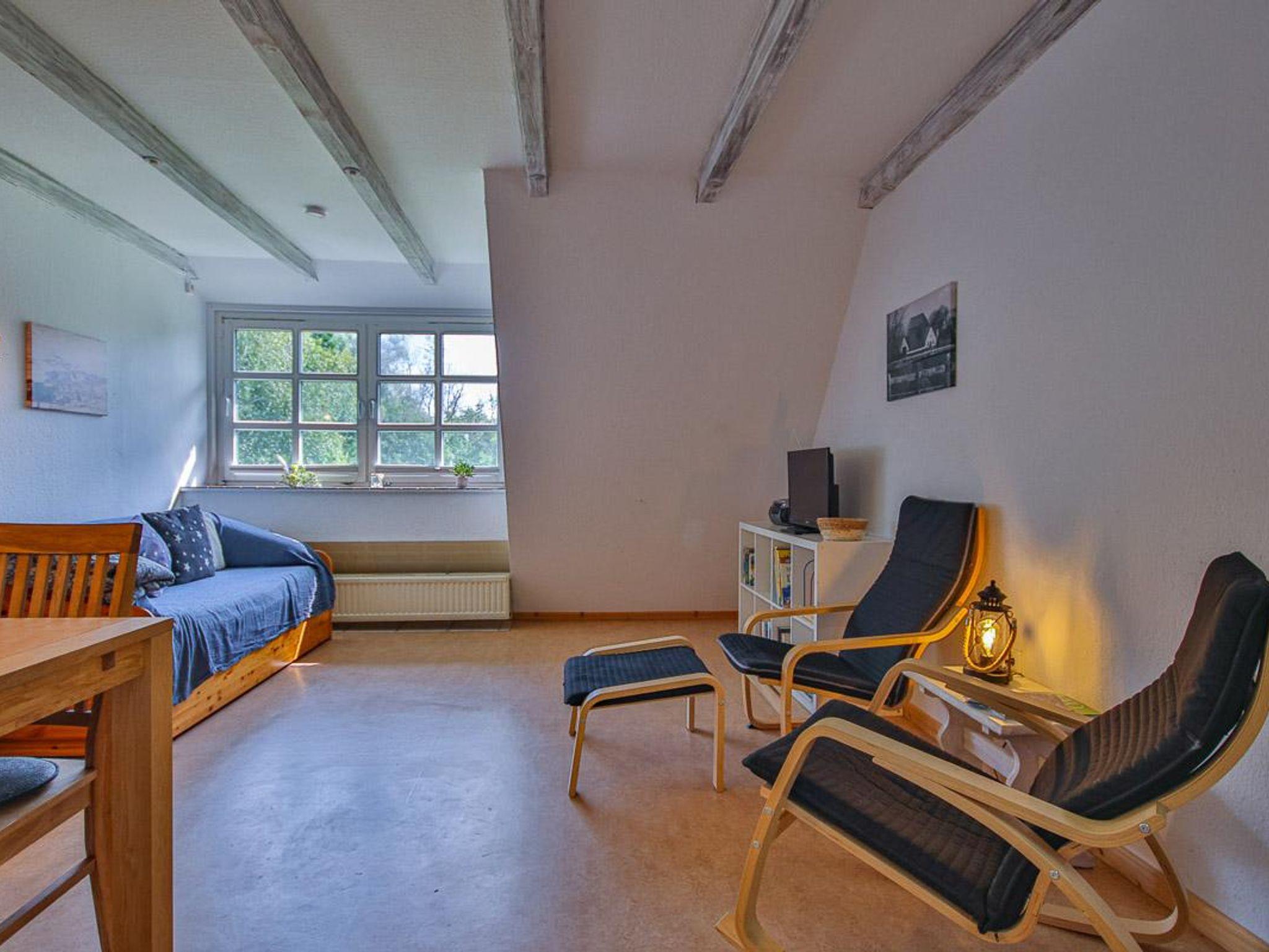 Wohnung im 1. Obergeschoss mit ca. 56 m² und Gartenblick. Geeignet für 4 Personen. Hunde sind in dieser Wohnung nicht erlaubt! Die Nichtraucher-Ferienwohnung ist ausgestattet mit SAT-TV, W-LAN auf Wunsch, Küchenzeile mit 4-Platten-Herd und Backofen, Geschirrspüler, Kühlschrank mit Gefrierfach, Kaffeemaschine, Toaster und Wasserkocher. Badezimmer mit Dusche, WC und Waschbecken. Im separaten Schlafzimmer befinden sich ein Doppel- und ein Einzelbett. Im Wohnraum kann die Couch zusätzlich als Schlafmöglichkeit verwendet werden. Kinderbett und Hochstuhl sind vorhanden.