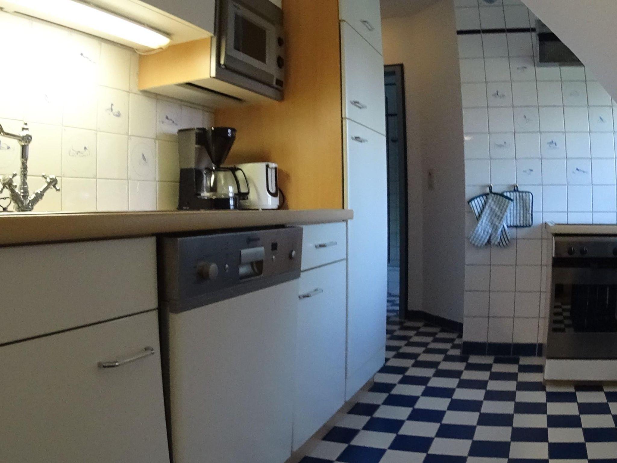 - Einbauküche mit Geschirrspüler, Ceran-Kochfeld, Backofen (Ober- u. Unterhitze, Heißluft und Grill), Mikrowelle