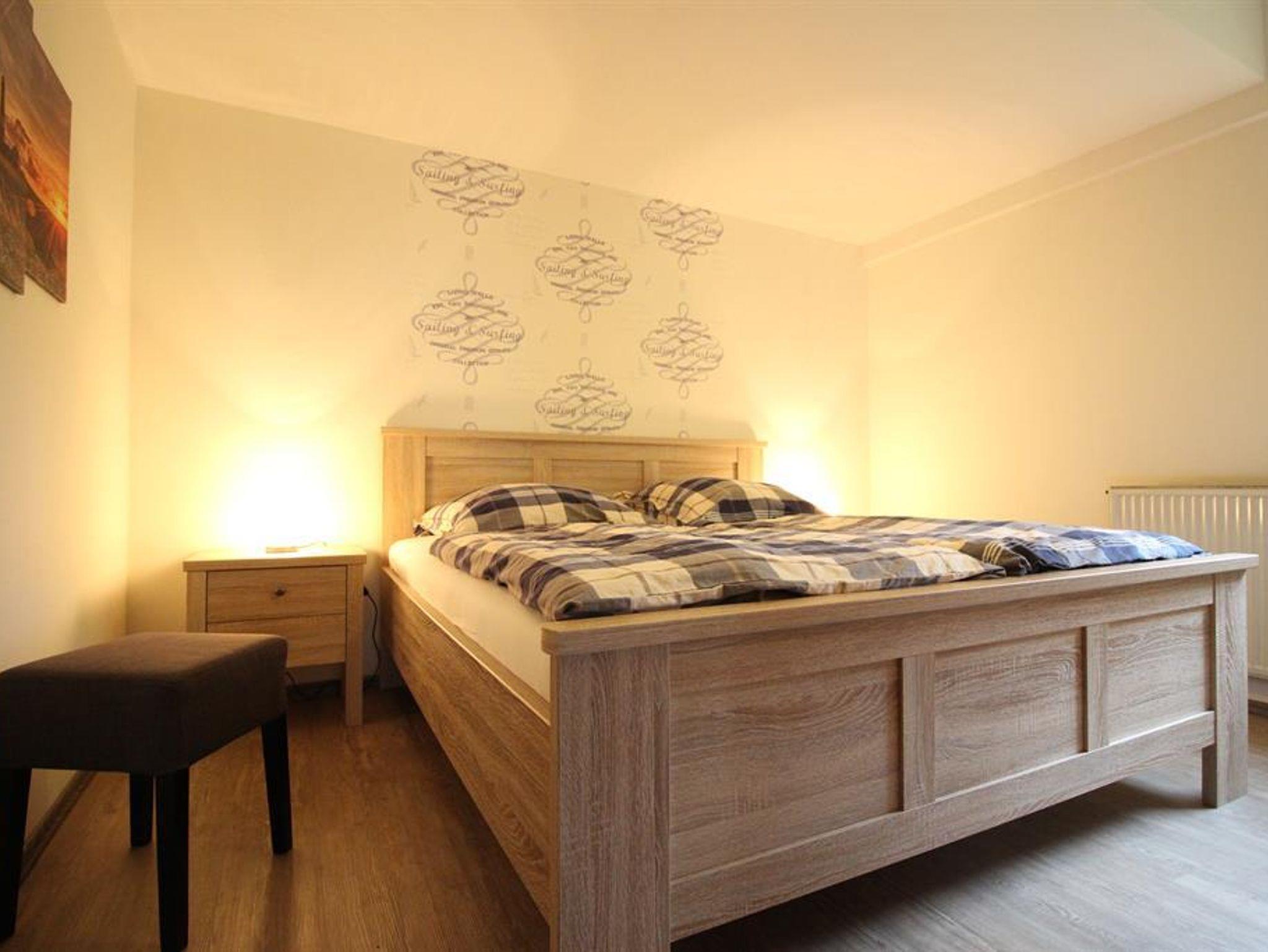 Das Schlafzimmer mit Doppelbett lädt zum Schlummern ein.