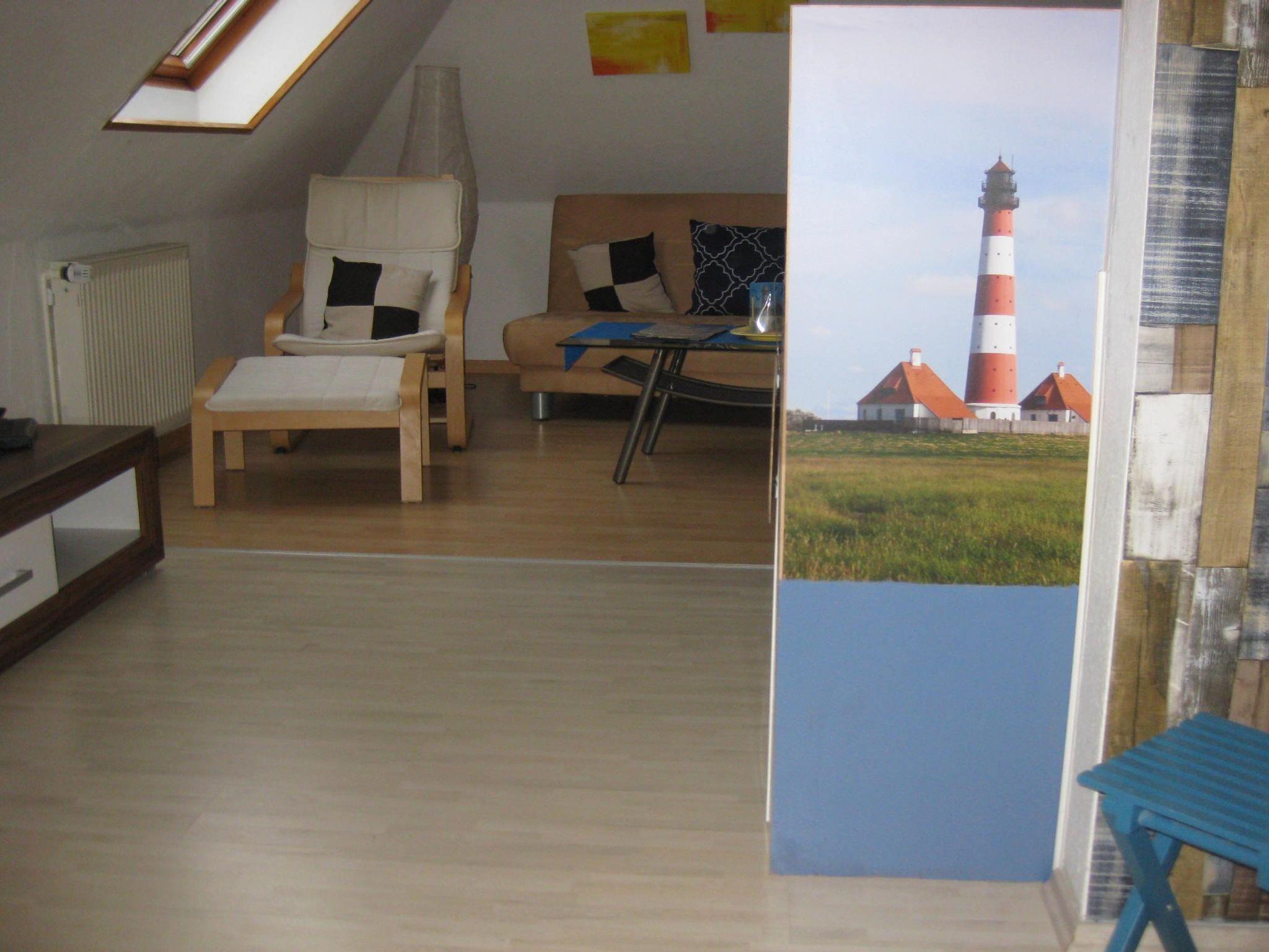 Ferienwohnung mit Blick auf Deich und Leuchtturm
