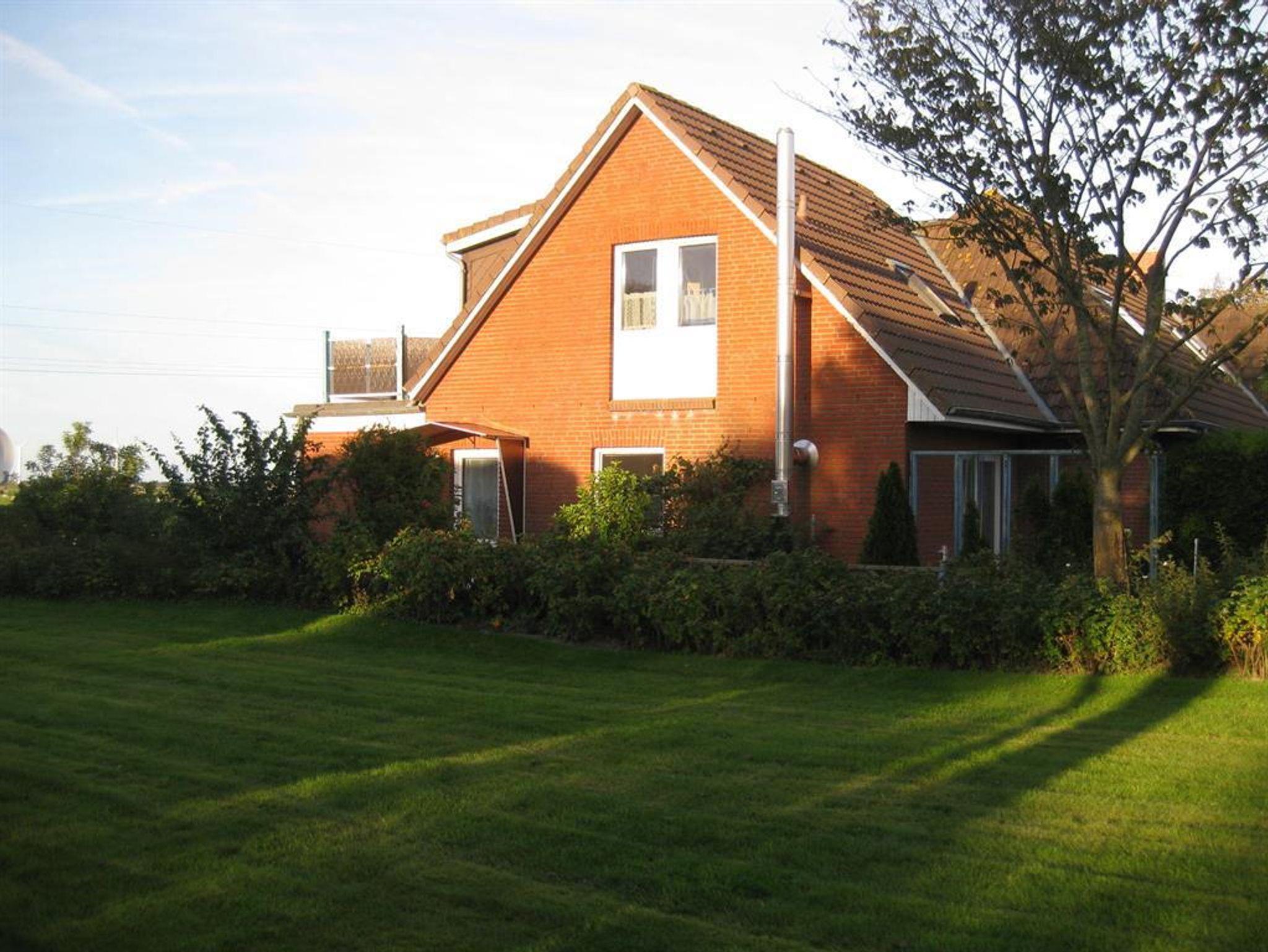 Gemütliche Ferienwohnung in Tating mit Blick auf Deich und Westerhever Leuchtturm, ideal für Erholung und Familien.