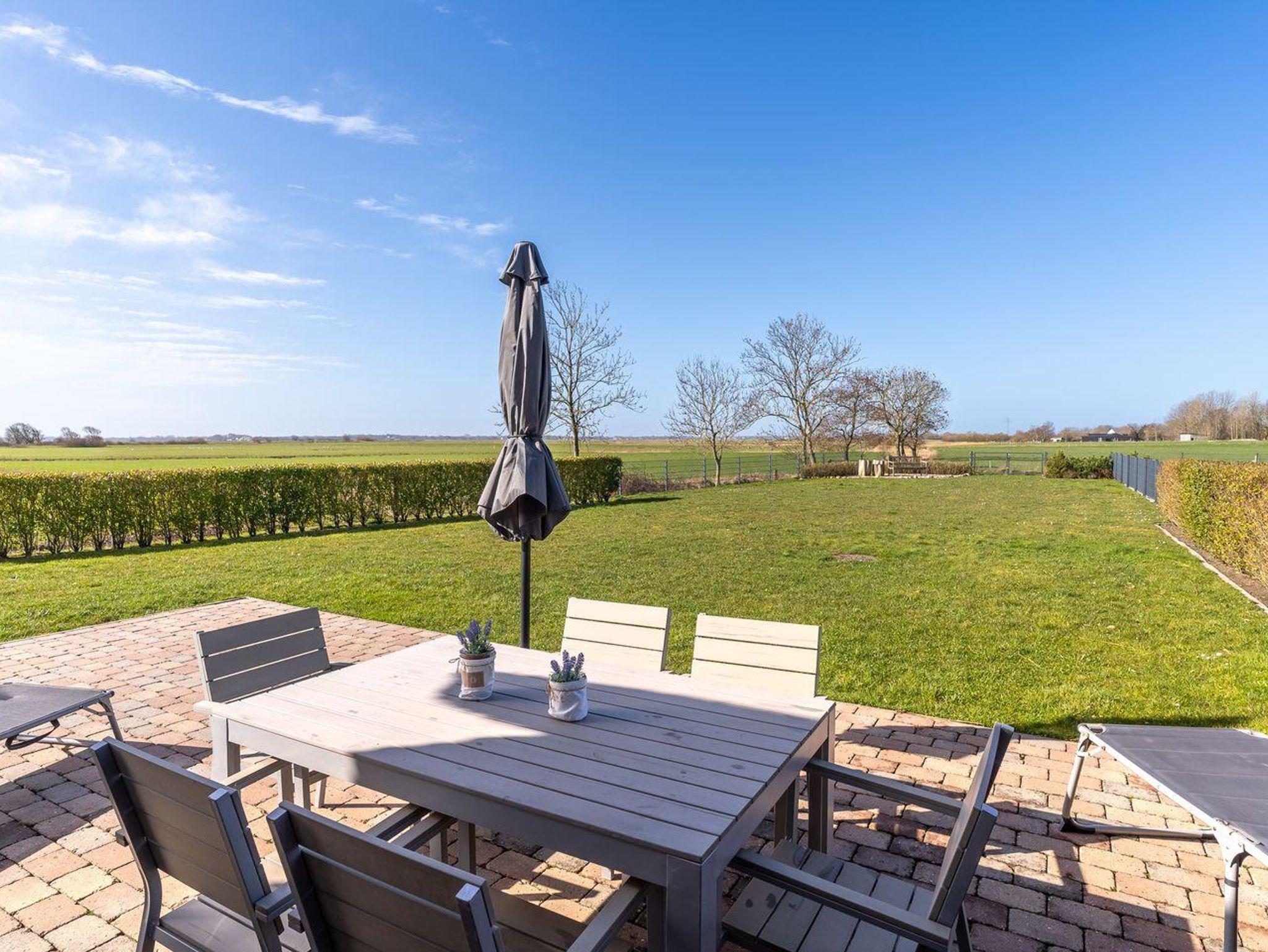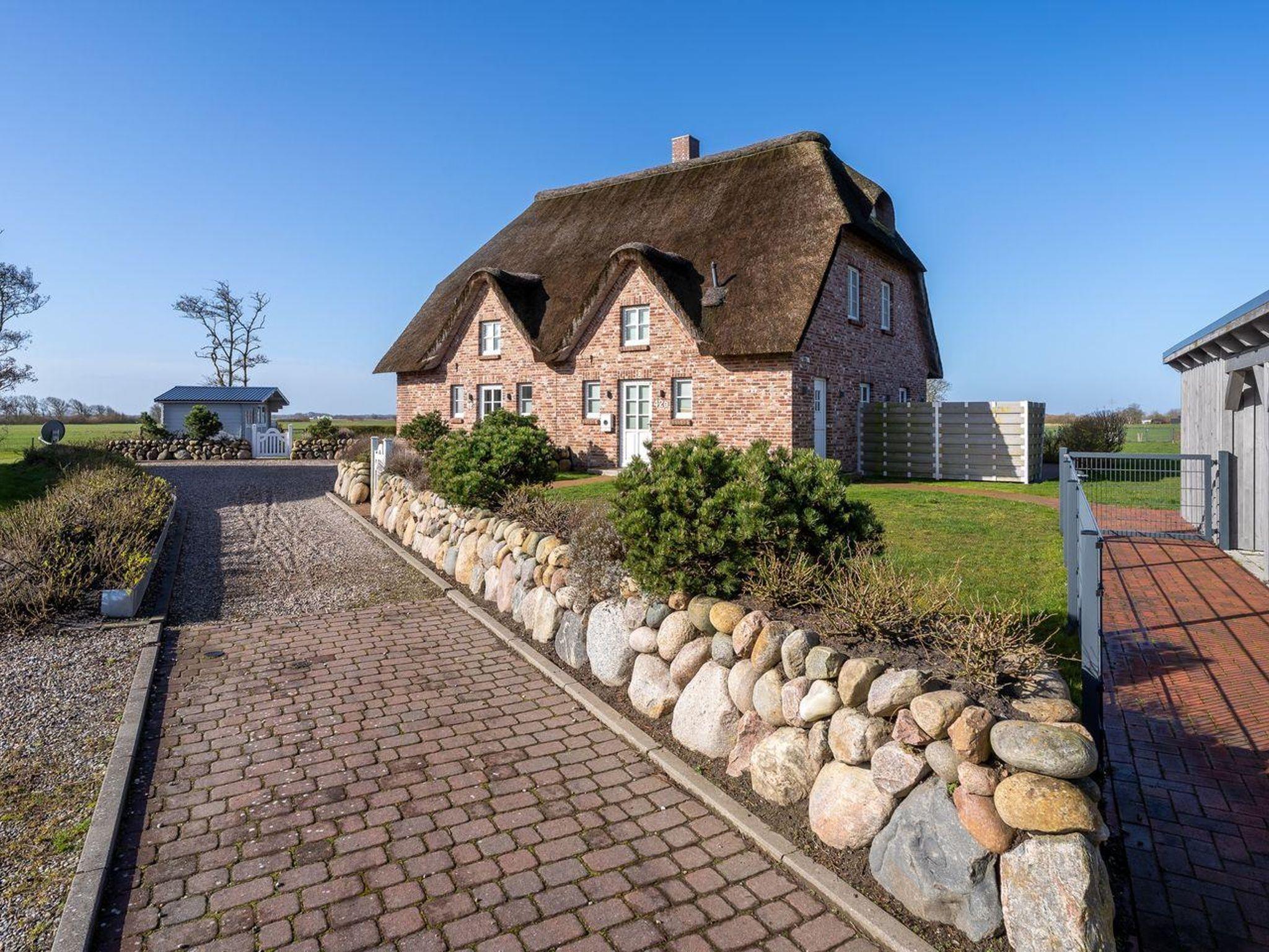 Reetdachhaus Ahoi: Charmante Doppelhaushälfte nahe St. Peter-Ording mit Blick auf Wiesen und moderner Ausstattung.
