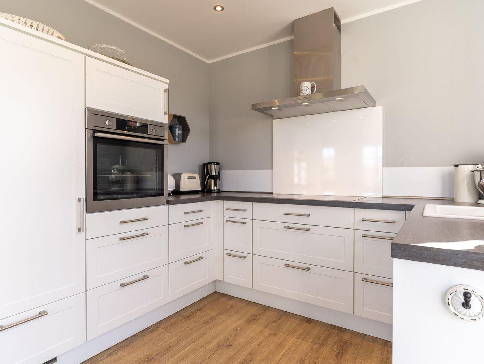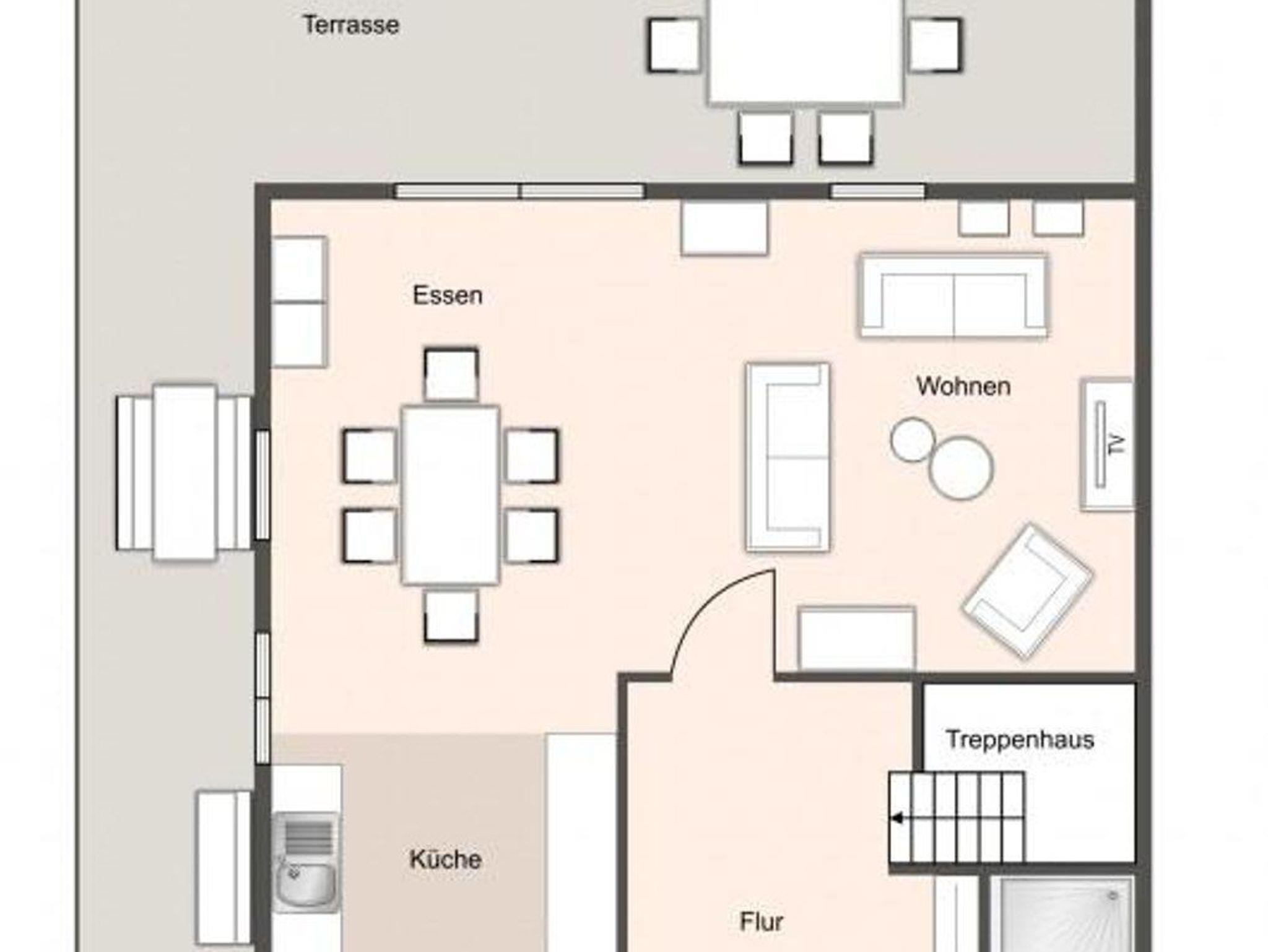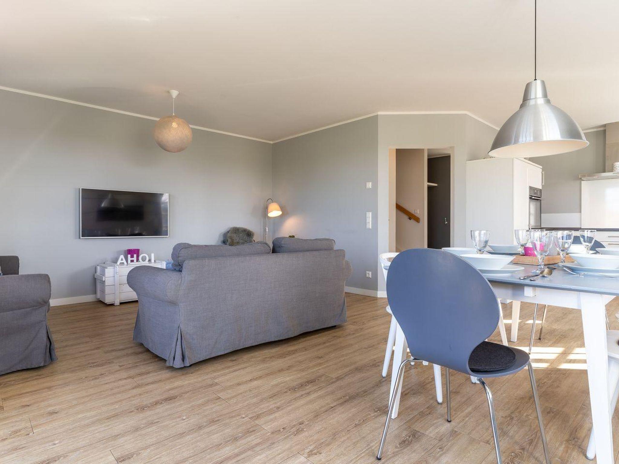 Im Erdgeschoss befindet sich der lichtdurchflutete Wohnraum mit Flachbild-TV, Stereoanlage und gemütlichen Sitzmöbeln. Die offene Wohnküche verfügt über hochwertige Geräte und ist voll ausgestattet für gemeinsames Kochen.