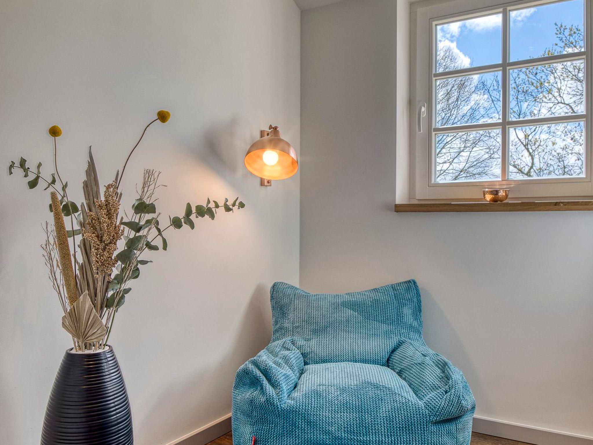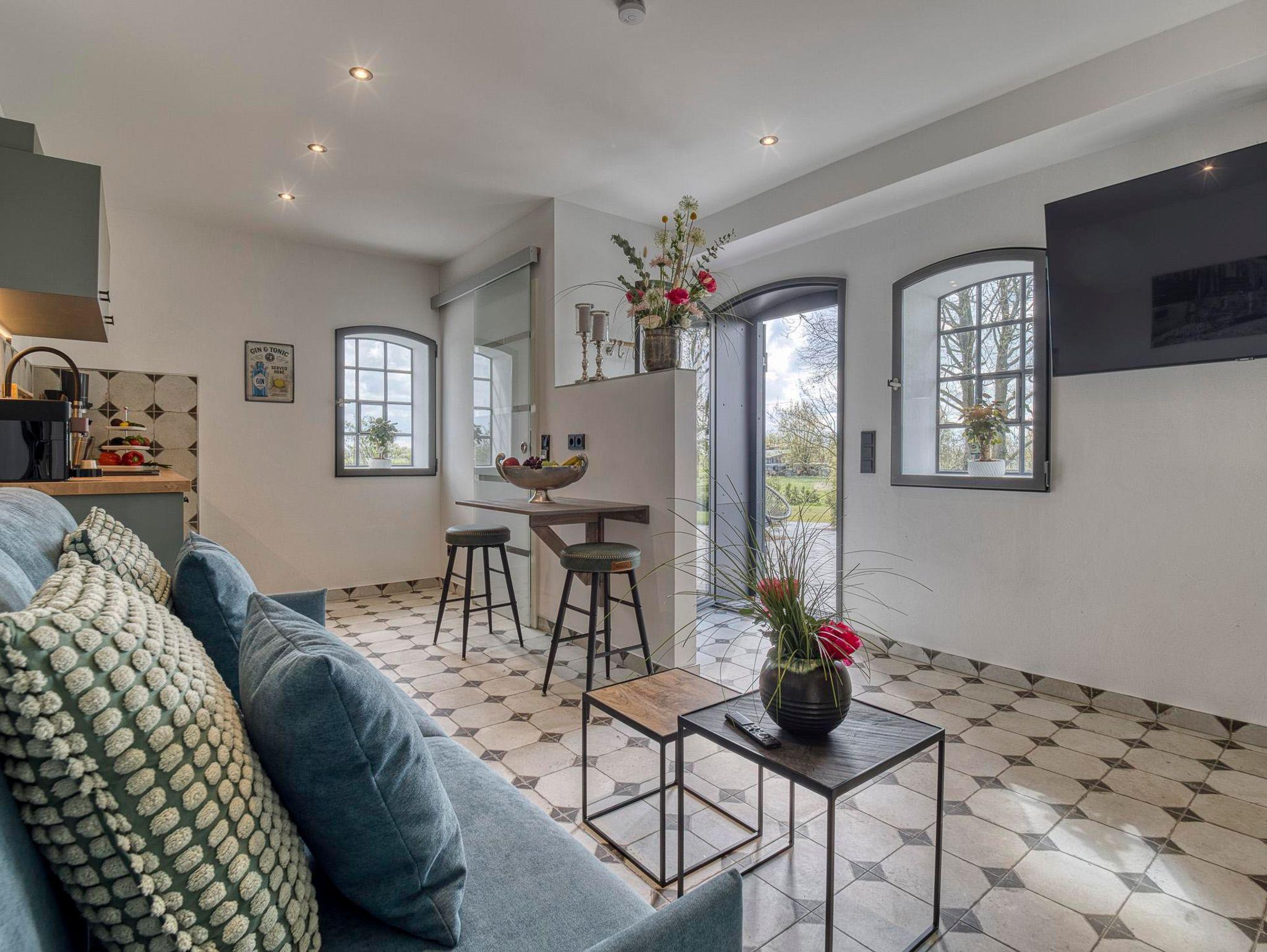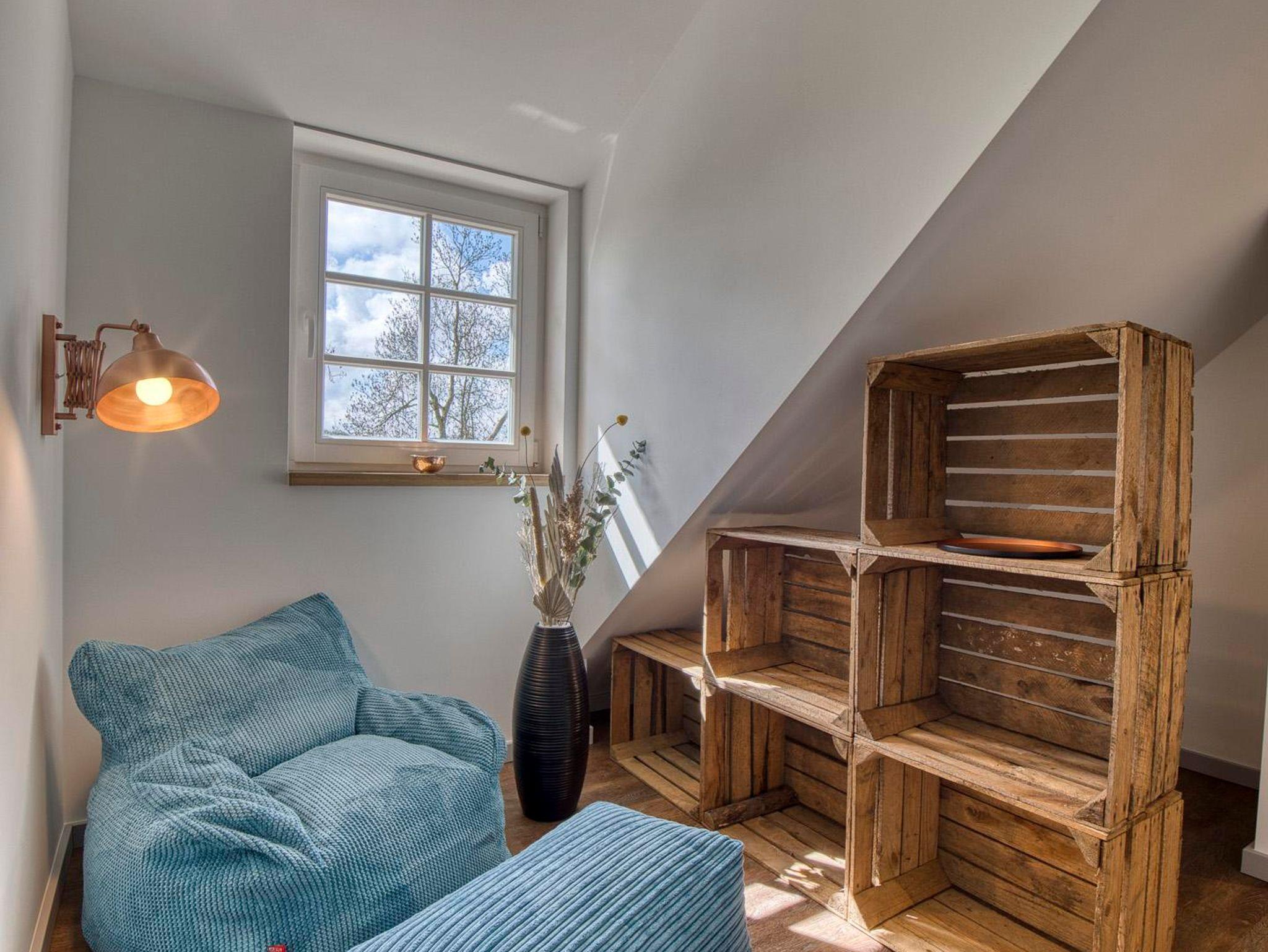 Erleben Sie einen Mix aus modernen Wohnelementen, Retro-Einflüssen und stilvollen Accessoires, die ein einladendes Ambiente schaffen. Entspannen Sie sich auf dem komfortablen Schlafsofa, starten Sie den Tag mit einem Frühstück auf der großzügigen Süd-Terrasse und lassen Sie sich von der Ruhe der einzigartigen Country Lodge Ole Steen umgeben.