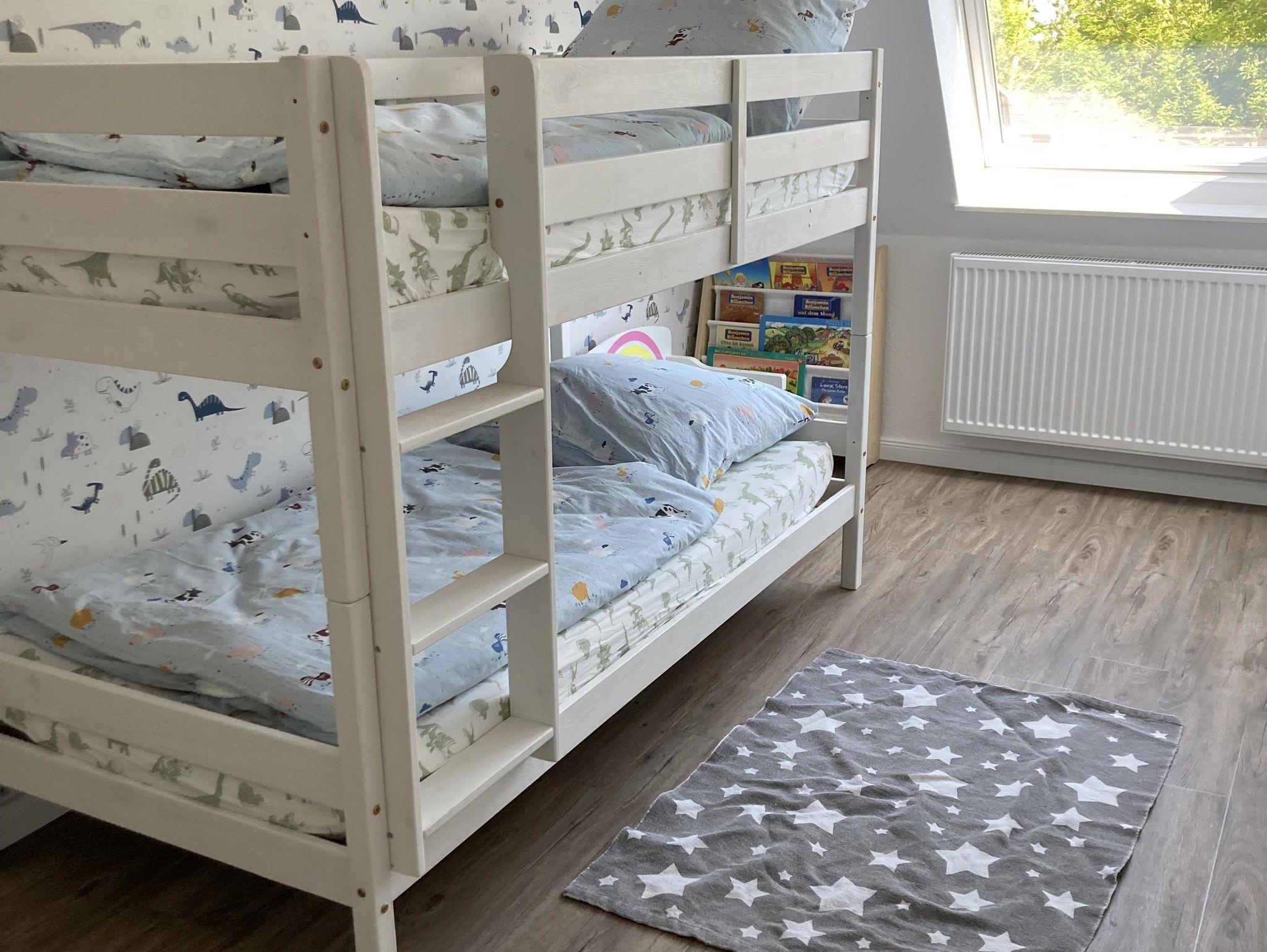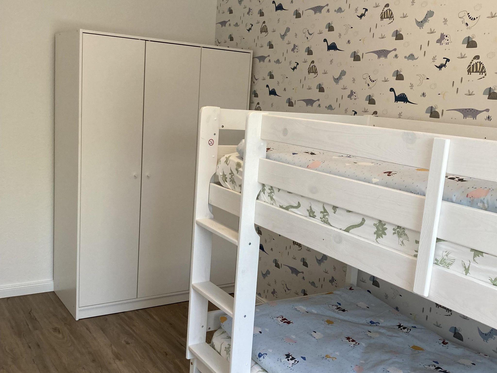Das Elternschlafzimmer hat ein Doppelbett (180x200cm) und Kleiderschrank. Das Kinderzimmer verfügt über ein Etagenbett und einen Kleiderschrank.