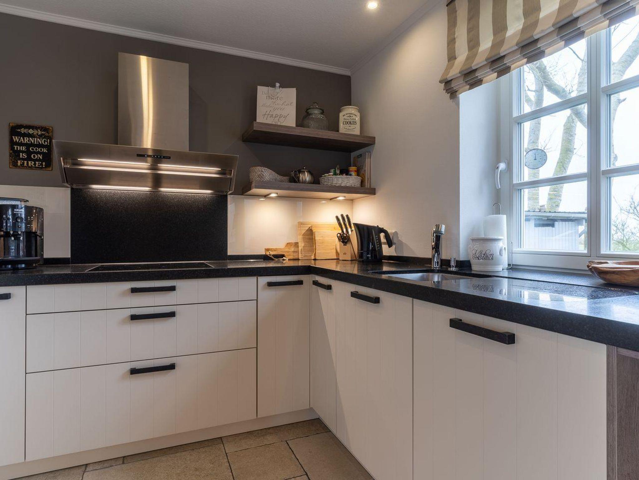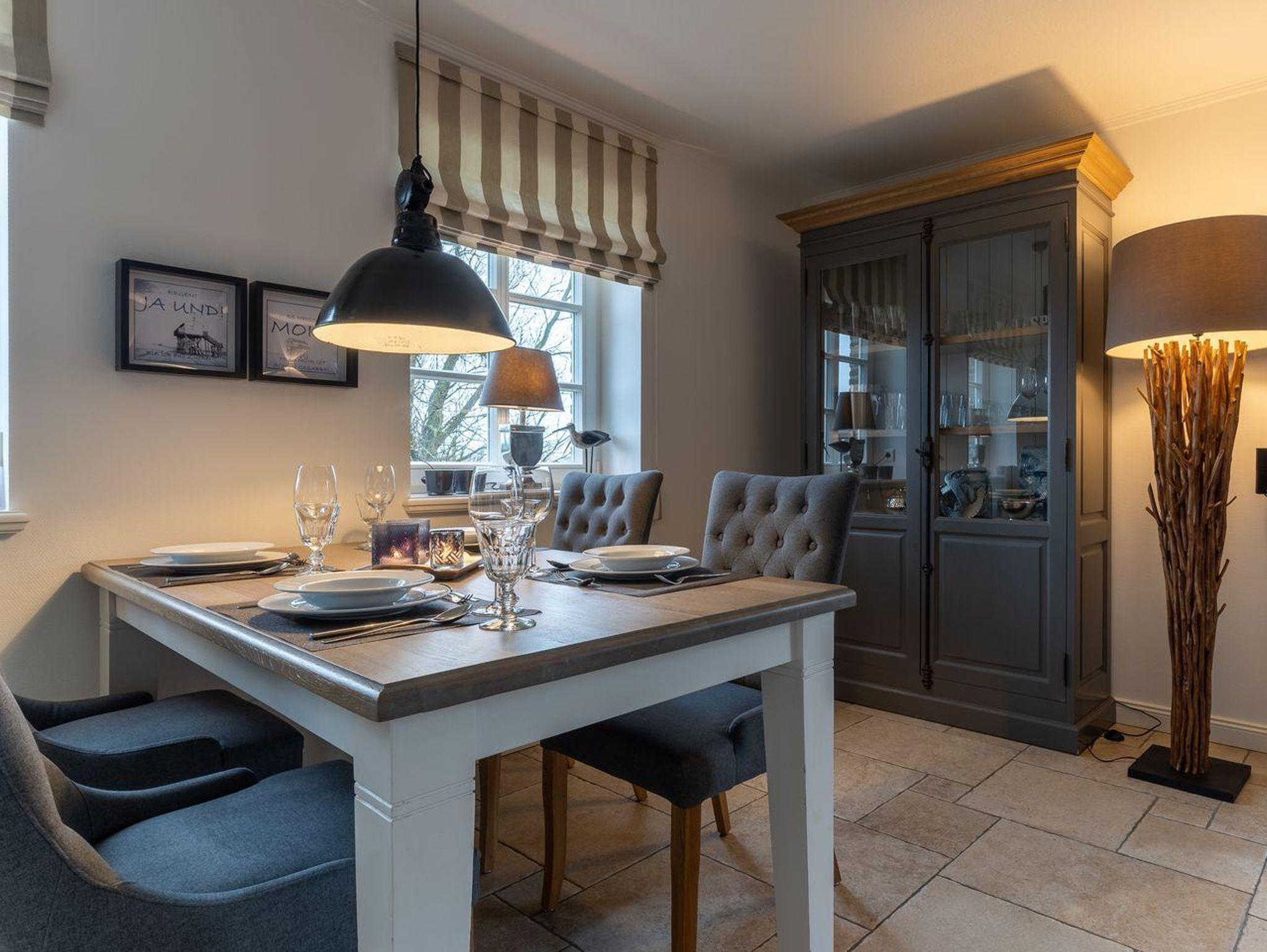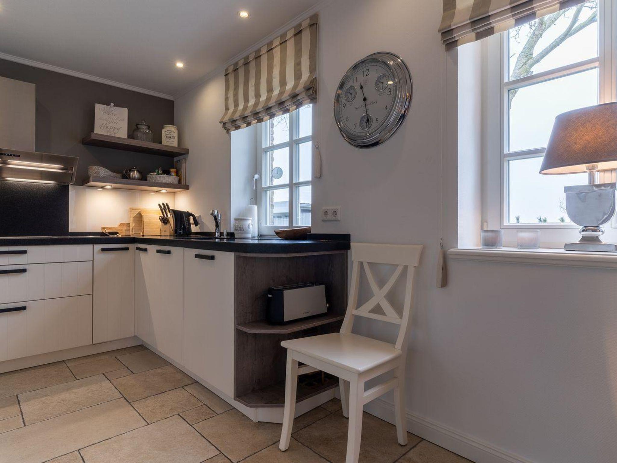 Eine Haushälfte unter Reet, ca. 100 m² Wohnfläche auf 2 Ebenen, auf großzügigem Grundstück mit ca. 1.200 m² und Terrasse. Im EG befinden sich ein Duschbad mit barrierefreier Dusche und WC, ein Schlafzimmer mit einem 1,60 x 2 m Doppelbett, das gemütliche Wohn/Esszimmer mit Kaminofen, offener, hochwertiger Küche sowie einem Wirtschaftsraum mit Waschtrockner. Im OG befinden sich das großzügige Elternschlafzimmer mit Boxspringbett 1,80 x 2 m und einem Einbauschrank, ein Kinderzimmer mit zwei Einzelbetten 1 x 2 m plus Einbauschrank sowie einem Duschbad mit Komfortdusche, Doppelwaschbecken und Handtuchheizung und WC. Im gesamten Haus liegt eine Fußbodenheizung, im EG unter Fliesen im OG unter weiß gekalkten Eichendielen.