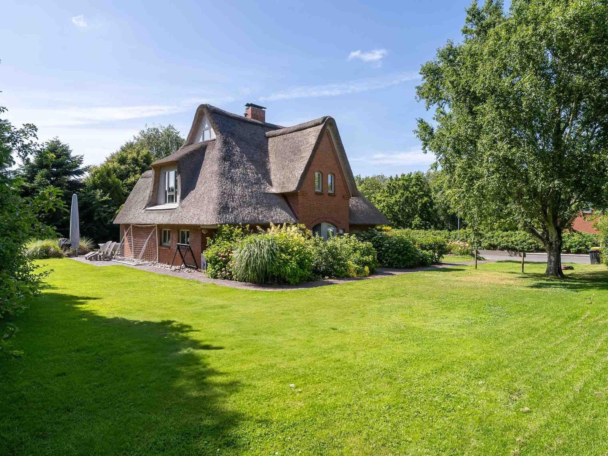 Charmantes, nachhaltiges Reetdach-Landhaus nahe St. Peter-Ording mit Garten, Terrasse und moderner Ausstattung für erholsame Nordseeferien.