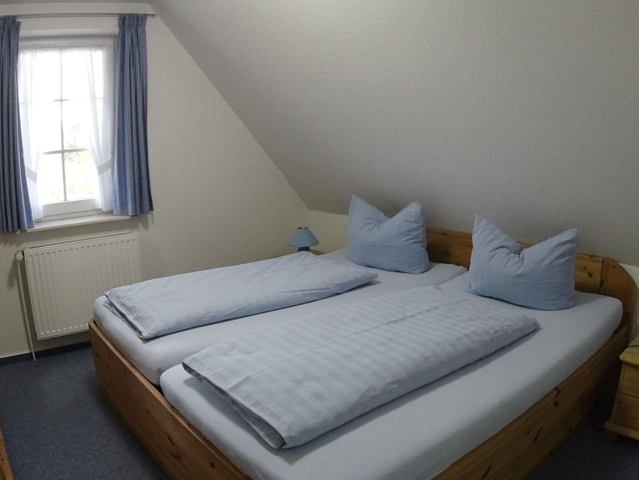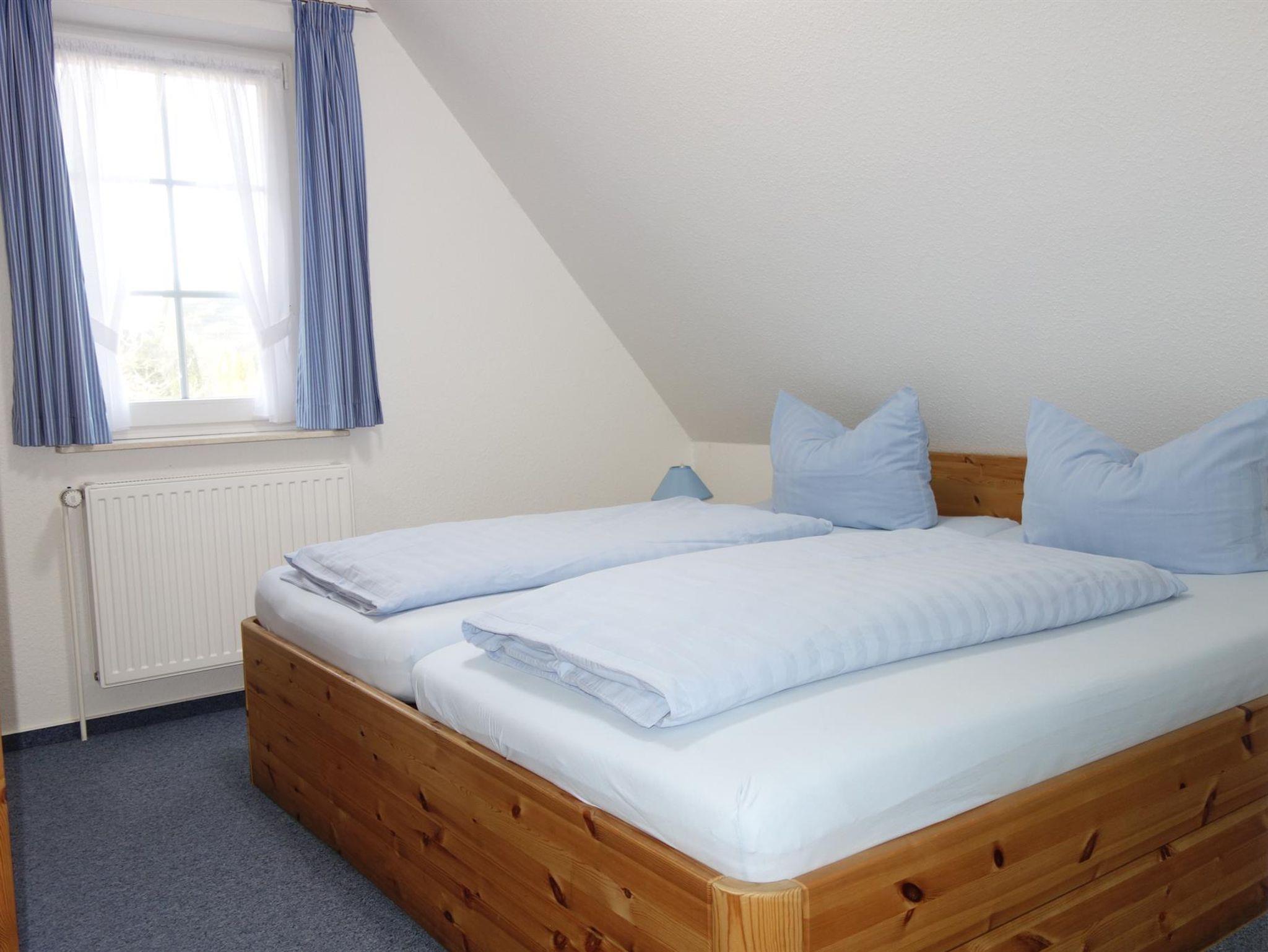 - Massivholzmöbel, 1 Schlafzimmer mit Doppelbett, 1 Schlafzimmer mit zwei Einzelbetten und Sitzecke