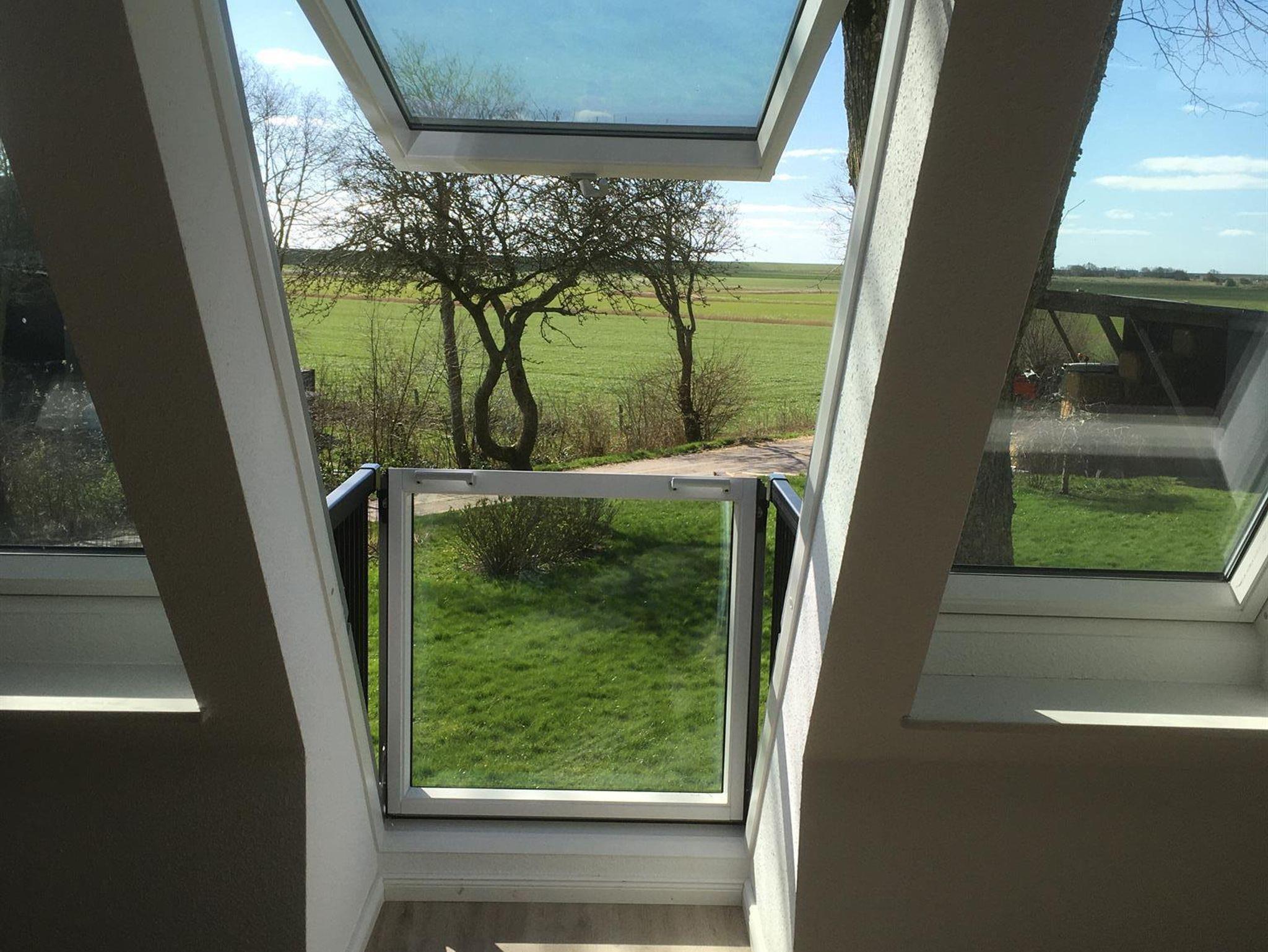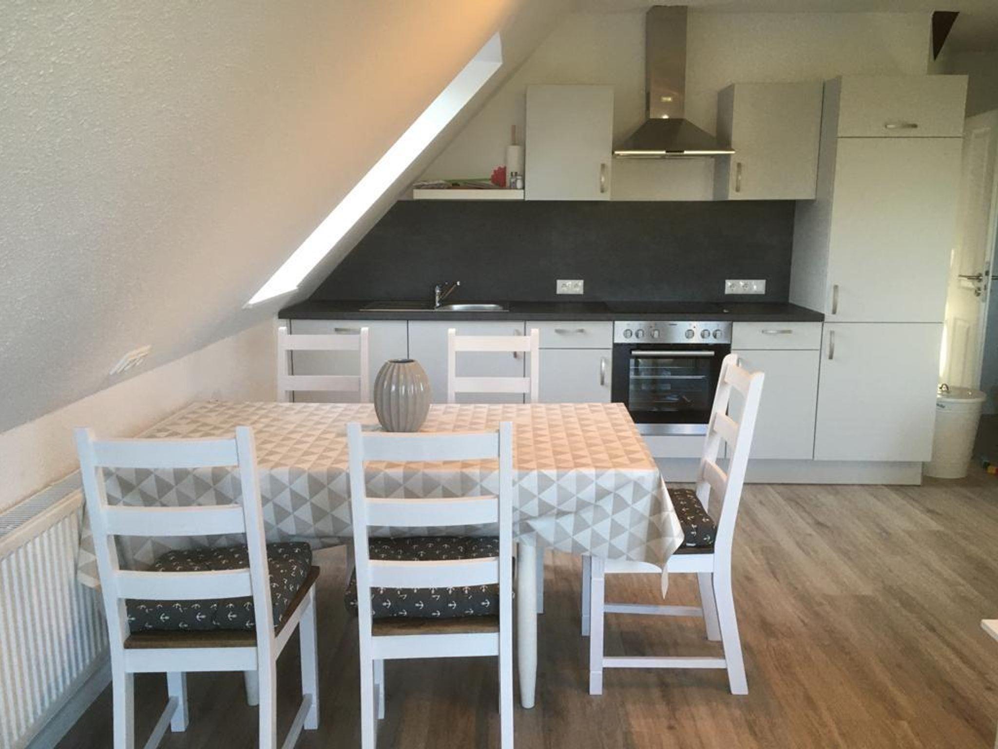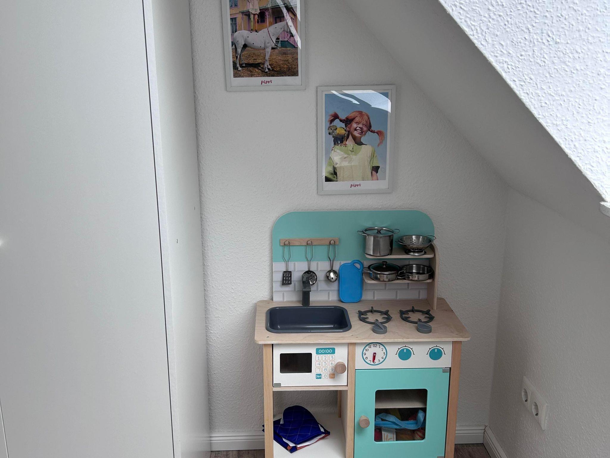 Unsere neu entstandene Obergeschosswohnung hat eine Wohnfläche von ca. 60 qm. Der Wohnraum ist hell, modern und gemütlich eingerichtet. Der Wohn/Essbereich bietet aureichend Platz für die ganze Familie. Das Elternschlafzimmer hat ein Doppelbett (180x200cm). Das Kinderzimmer verfügt über ein Etagenbett und ein Einzelbett. Die vollausgestattete Küche bietet Ihnen alles, was Sie für Ihren Urlaub benötigen u.a. Geschirrspüler, Backofen, Mikrowelle, Kaffeemaschine etc. In der Wohnung befindet sich ein Duschbad mit Handtuchwärmer. Die Wohnung hat direkten Blick über die tollen Panoramafenster und ausklappbaren Mini Balkon in den Garten und Spielplatz. In einem separaten Raum gibt es die Möglichkeit gegen Gebühr zu waschen und zu trocknen.