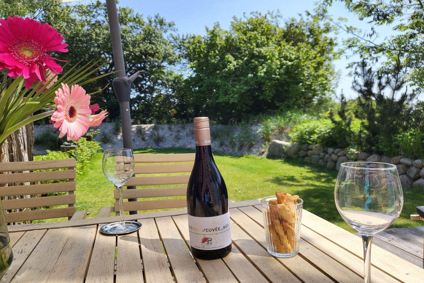Der Garten verfügt über einen Außenwasserhahn, z.B. zum Abspülen von Surfkleidung, Kitebrettern etc.
