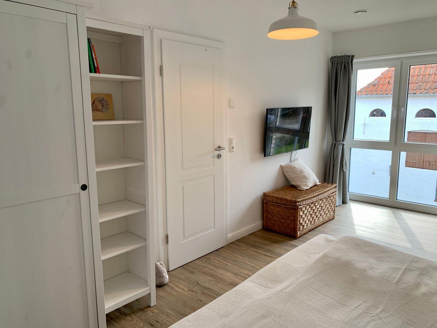 Ein weiteres 180x200 Doppelbett steht im zweiten Schlafzimmer zur Verfügung. Dort gehören neben Kleiderschrank noch eine urgemütliche Couch und ein 43 Zoll Flachbild-TV zur Ausstattung. Zusätzlich ist ein klappbares Gästebett 90x200cm für eine 5. Person vorhanden.