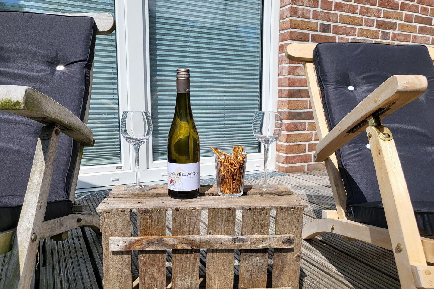 Das Ferienhaus begeistert mit komplett möblierter, edler Echtholzterrasse, die zum gemeinsamen Essen, Spielen und Sonnenbaden einlädt.