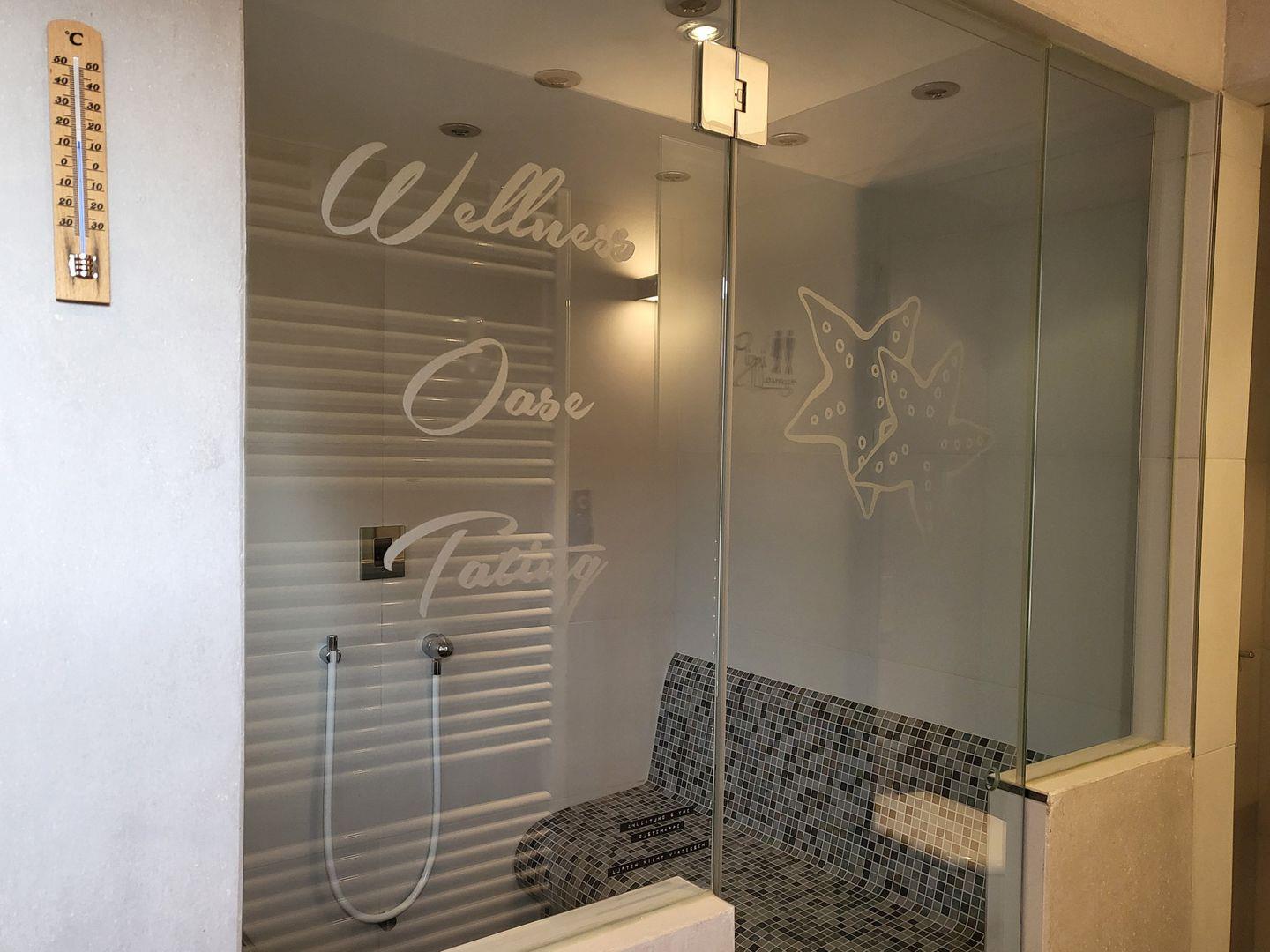 Über den angrenzenden Hauswirtschaftsraum, in dem Sie neben Waschmaschine und Trockner auch ein Bügelbrett und Bügeleisen finden, gelangen Sie über eine Außentür in den Wellness-Anbau mit traumhafter Dampfsauna und Ruhebereich sowie einer weiteren Dusche und WC. Wellnesserlebnis unter freiem Himmel. Dampf-Sauna kann gegen eine geringe Gebühr wochenweise dazu gebucht werden.