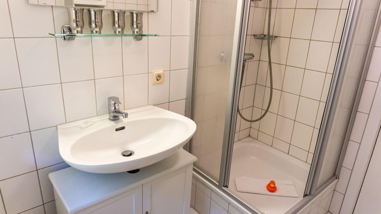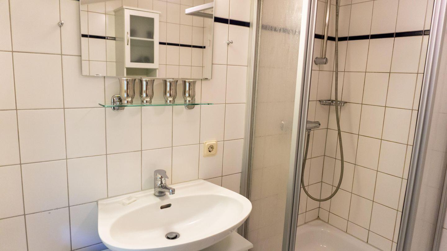 Das Badezimmer der Wohnung ist mit einer Dusche ausgestattet. Ein Haartrockner ist ebenfalls vorhanden, damit Sie sich ganz wie zu Hause fühlen können. Zusätzlich stehen Ihnen Waschbecken und WC zur Verfügung.