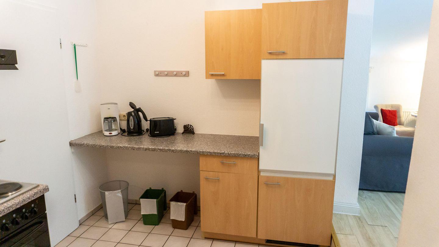 Die Küche bietet ein 4-Platten-Herd, ein Backofen, eine Spülmaschine sowie sämtliche Küchenutensilien, Geschirr und Besteck. Ein Kühlschrank mit Gefrierfach sorgt dafür, dass Sie all Ihre Lieblingsspeisen problemlos verstauen können. Die Küche ist offen zum Wohnzimmer und ermöglicht es, beim Kochen den Kontakt zu Familie oder Freunden zu genießen.