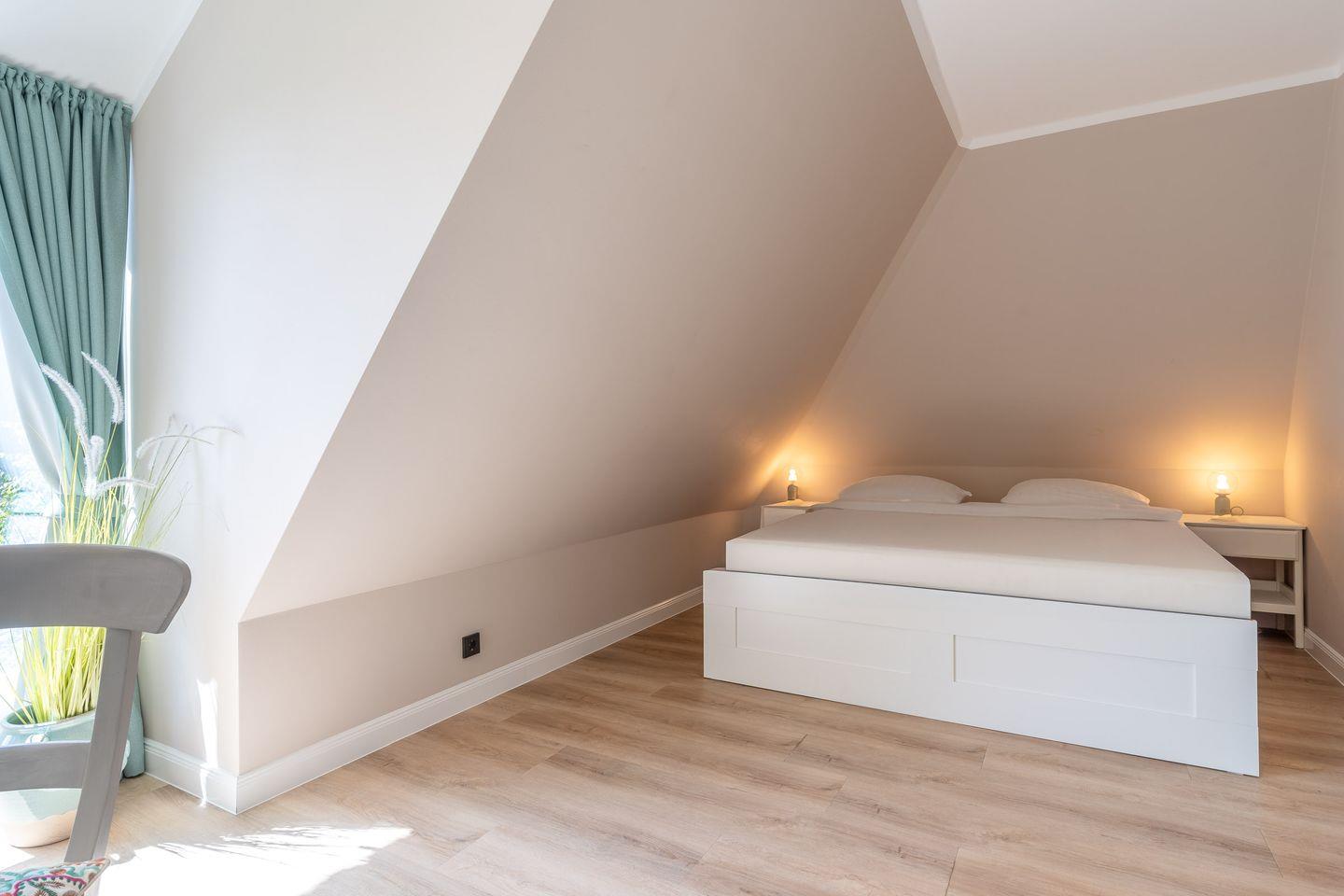 Im Obergeschoss erwarten Sie zwei behagliche Schlafzimmer: