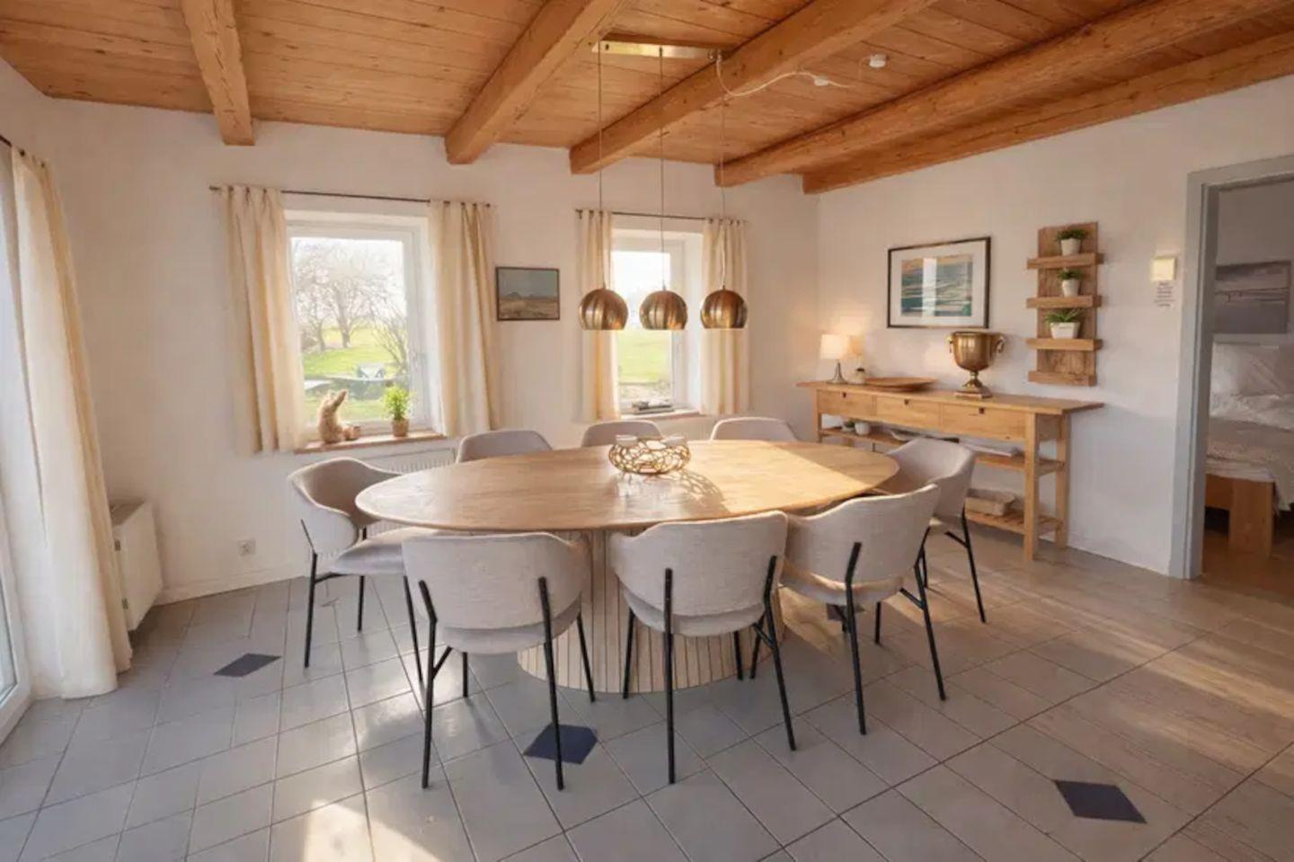 Das Ferienhaus „Oland“ auf dem Tholenhof bietet auf 120 qm Platz für bis zu 8 Personen. Zwei Etagen, helle Wohnräume, private Terrasse mit Frühstücksplatz und eigener Strandkorb sorgen für entspannte Urlaubstage. Neu auf der Ferienanlage ist ein Reitplatz. In ruhiger Lage nahe St. Peter-Ording entstehen stetig weitere Angebote – ideal für Familien und Naturliebhaber.