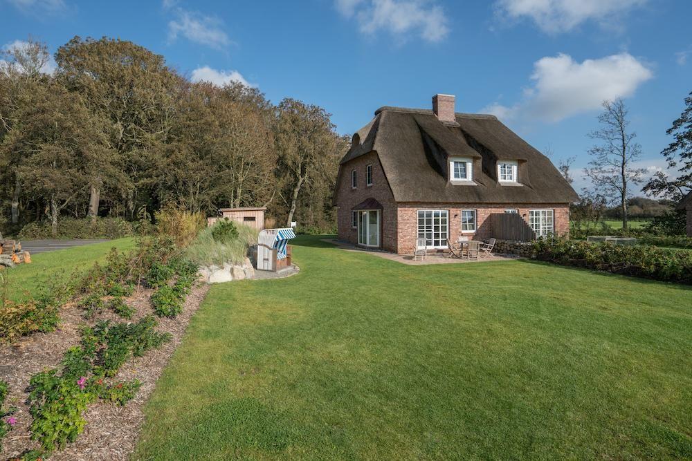 Idyllisches Reetdachhaus nahe St. Peter-Ording mit Sauna, Kamin und großem Garten für erholsame Tage am Meer.