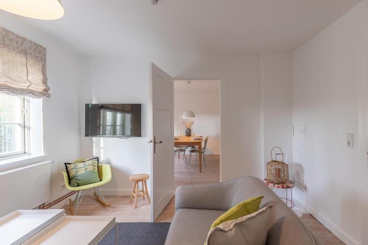 Parterre: (Wohnzimmer(TV(Flatscreen, Satellit), Sitzecke), Esszimmer(Esstisch), Küche(Kaminofen, Kochplatte(4 Kochplatten, Ceranfeld), Wasserkocher, Toaster, Dunstabzugshaube, Kaffeemaschine, Backofen, Spülmaschine, Kühlschrank(+ Gefrierfach)), Badezimmer(Dusche, Waschbecken, Toilette), Toilette(Waschbecken, Toilette)) In der 1. Etage: (Schlafzimmer(Doppelbett(160 x 200 cm)), Schlafzimmer(Einzelbett(90 x 200 cm), Einzelbett(90 x 200 cm))) Heizung, Terrasse, Garten(alleinige Nutzung), Gartenmöbel, Parkplatz, Hochstuhl, Kinderbett (kostenpflichtig), Wäschepaket inklusive