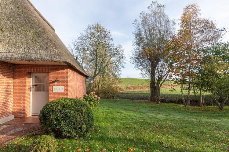 Reetgedecktes Ferienhaus in Tetenbüll mit großem Garten, Kachelofen und WLAN, ideal für ruhige Natururlaube.